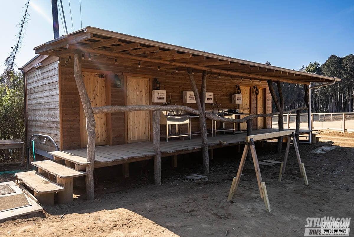 ログハウスには、シャワー付きトイレやコインシャワーを完備。ワンちゃんを洗えるスペースもある。