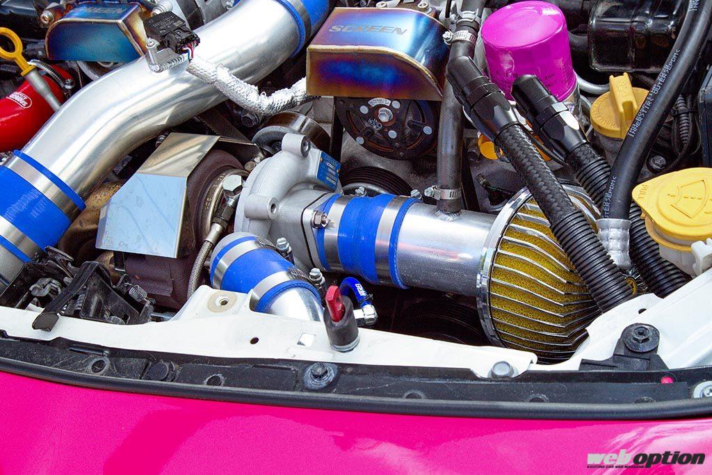 エンジンは、老舗スクリーンによってトラストのT620ボルトオンターボキットをインストール。最高出力は約300ps。オーナーは今後、エンジン本体内部まで手を入れて、より完成度の高い機関系を目指していくそうだ。