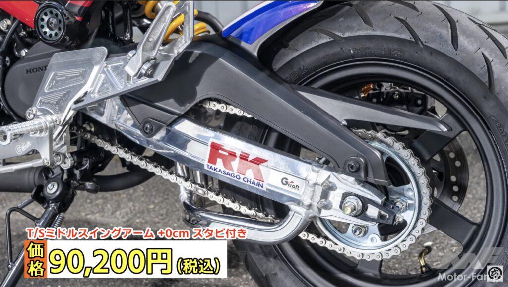 機能パーツについても定評あるGクラフト製品。特にバックステップは4MINIなどで定番アイテムといってもいい。新型グロム用に開発されたバックステップは50mmバック・20mmアップとなる設定。サーキット用などの極端な設定ではないためツーリング用にも最適。さらに3ポジション調整可能なタイプとなっているので好みのライポジが得られることだろう。