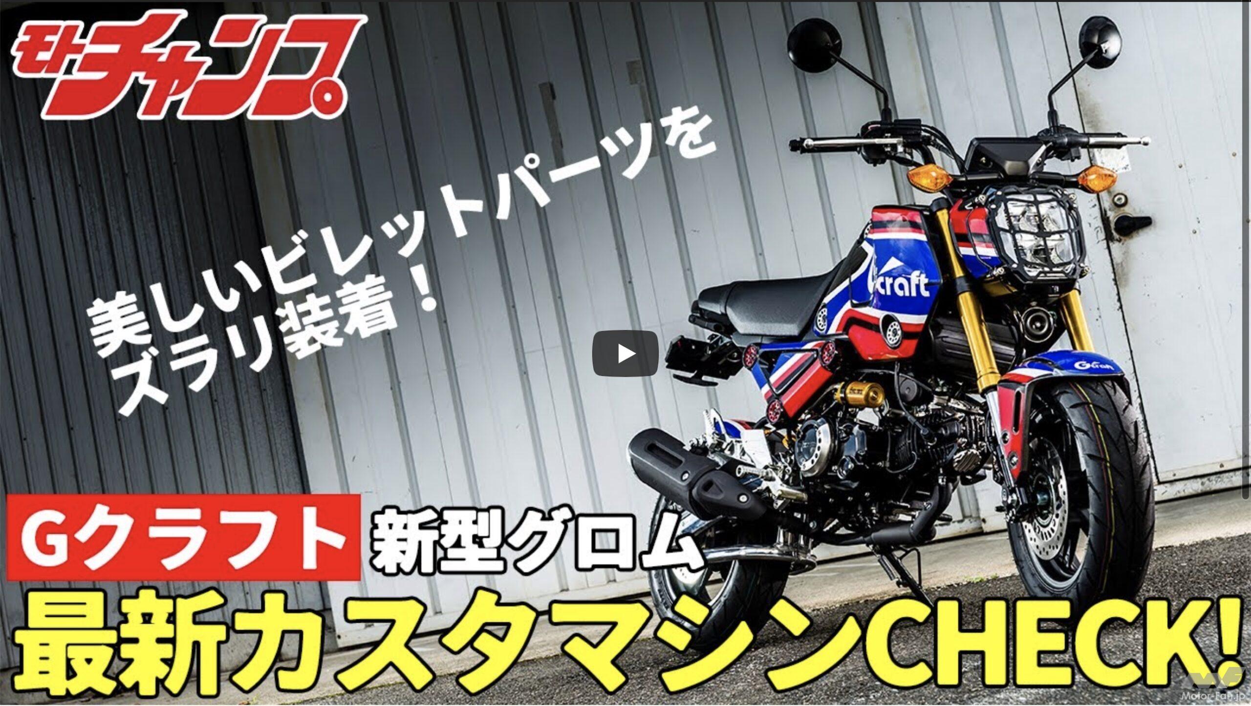 新型になったホンダ・グロムについては過去にサーキットテストの記事や旧車チックなカスタムマシン、パリダカ外装キットなどの記事を公開している。いずれもユーチューブで無料配信している動画プログラム「モトチャンプTV」からのダイジェスト版で、新型グロムの魅力がモトチャンプ誌面を読むだけより理解が深まる内容となっていた。続いて今回はパーツメーカーの名門である「Gクラフト」が開発した新型グロム用カスタムパーツを装着したコンプリートマシンを紹介する「Gクラフト・新型グロム最新カスタムマシンCHECK!」の動画を紹介しよう。