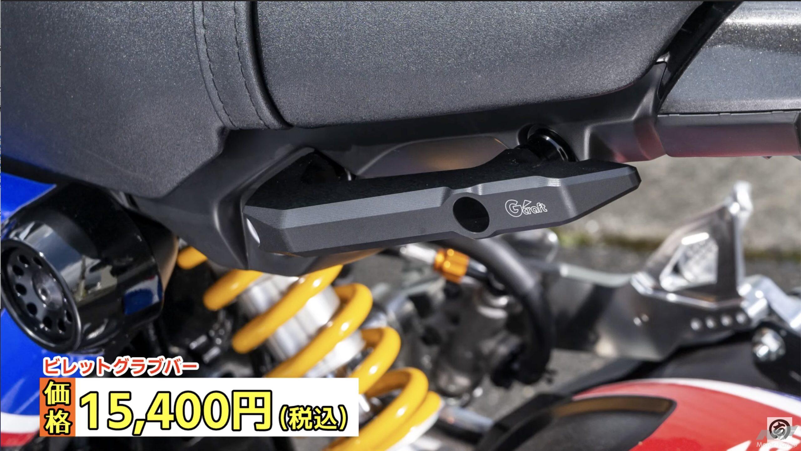 続いては純正リヤフェンダーを取り去りフェンダーレスにするなら欠かせないライセンスホルダー。Gクラフト得意のアルミ削り出し製品で、商品名にもビレットが使われている。強度を保ちつつ軽量化を狙った形状とされているため、フェンダーレスにした時のルックスがさらにまとまりあるものになっている。