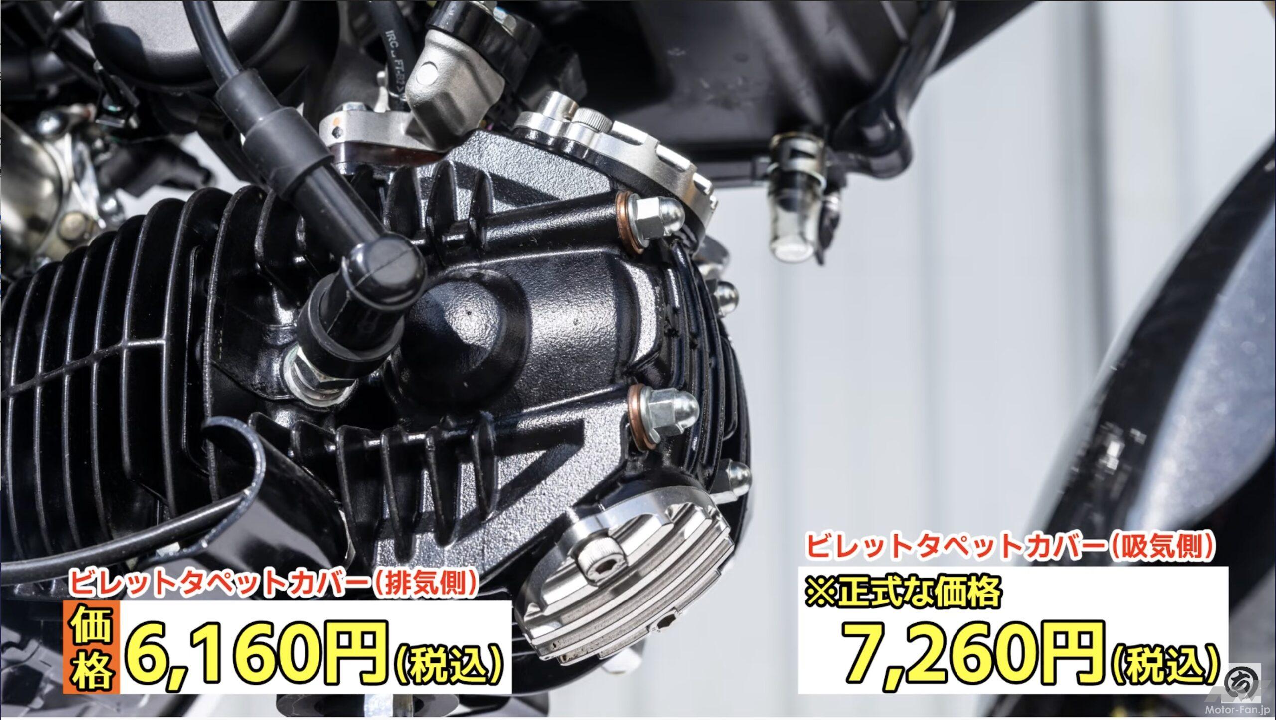 今回はさらにボディパネルに使われているビレットキャップも紹介しているが、取材時は製品化されていなかったため価格などは未定だった。このマシンに使われているシルバーとレッドのほかブラックが用意されていて、いずれも3個セットでの販売になる予定だった。さらにビレットによるサイドカバーも試作中とのことで、動画の最後付近にチラッとだけ登場しているぞ!