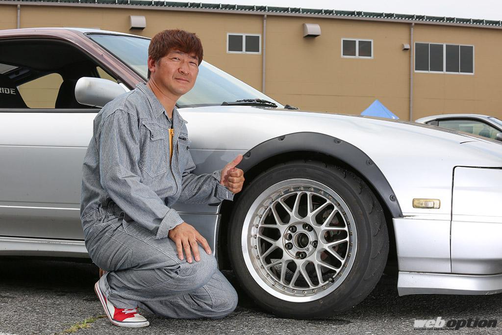 「車検のためにミラルダに行った際に、ミラルダ主催の練習会に誘われてドリフトデビュー。みんな親切で色々と教えてくれるので助かっています。トラブルがあった際も、高島代表がいるので心強いですね」とは、180SXオーナーの岡崎さん。