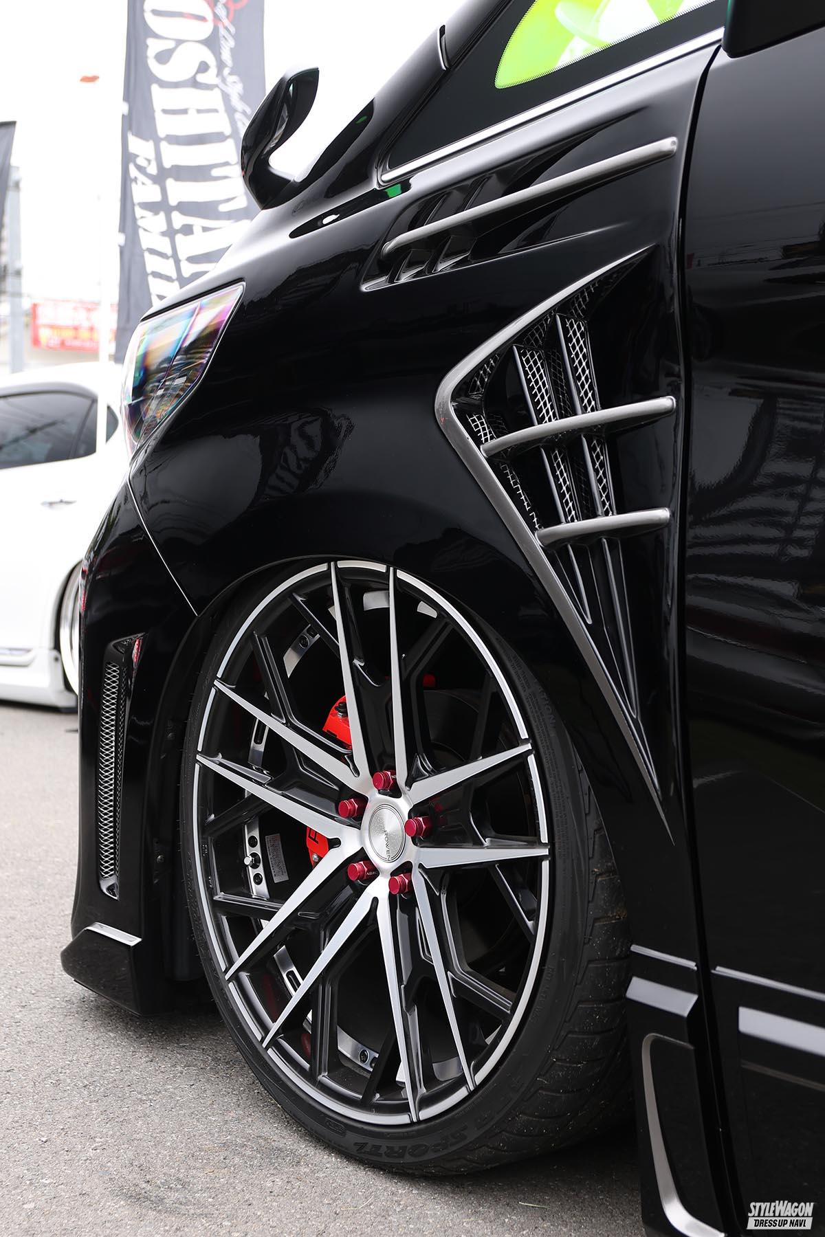 Specifications WHEEL●ロェン フレイム(21×9J) TIRE●ATRスポーツ EXTERIOR●F/S/R/ウイング/フェンダー=ロェン、テールライト/リフレクター/ハイマウントストップランプ=ヴァレンティ INTERIOR●スカッフプレート=ロェン TUNING●エアサス=ACCエアランナー、マフラー=ロェン