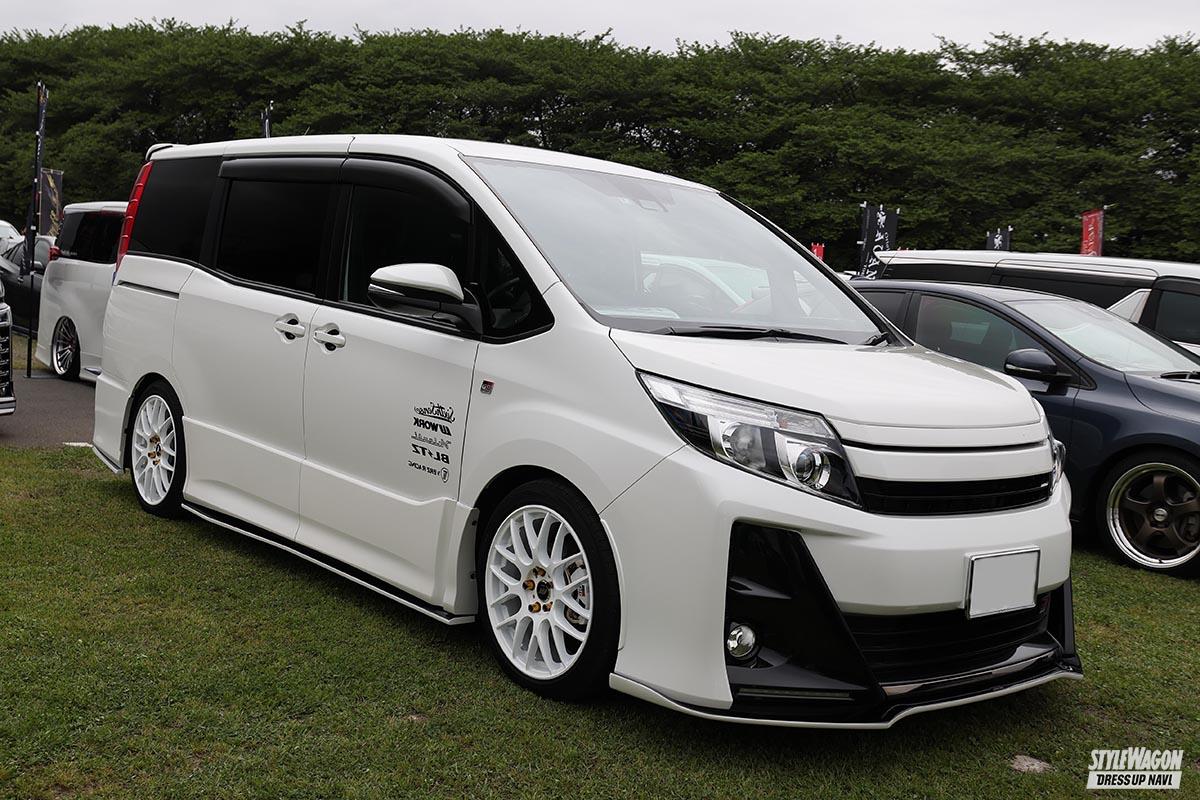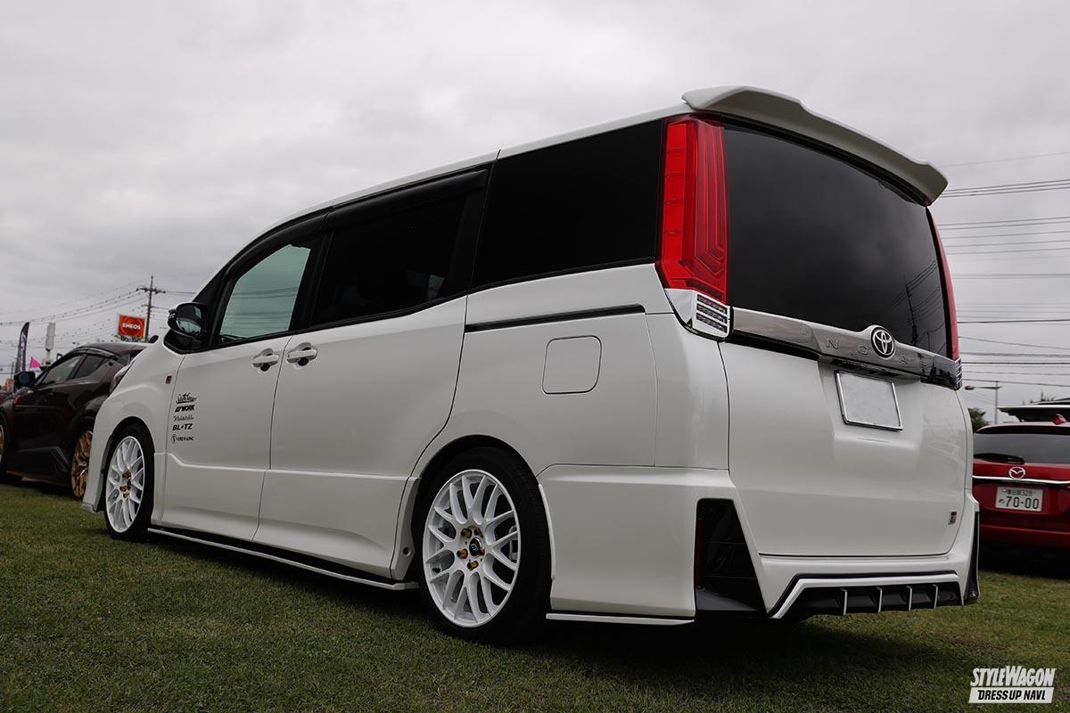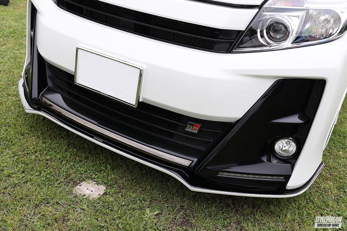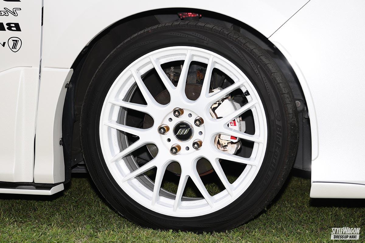 希少なGRスポーツのノアだが、オーナーは白色をキーにコーディネイト。「白いボディに白いホイールが憧れだった」のだ。そして選んだのは『ワークエモーションM8R』。GRならではのスポーツ性と見事にマッチしたモデルと言えよう。またエアロは、リップはシルクブレイズ、サイドはシックスセンスと、いわゆるミックスエアロになっている。しかしまとまり感は抜群! それぞれ天面を黒く塗り分けることで、統一感がアップしたのかも!?