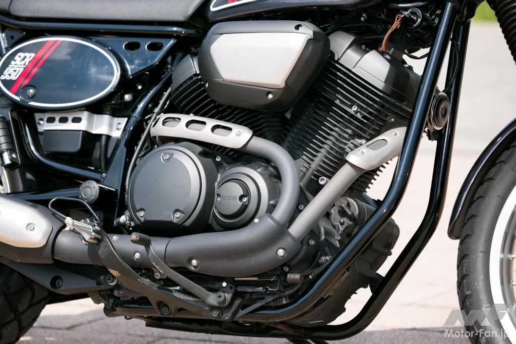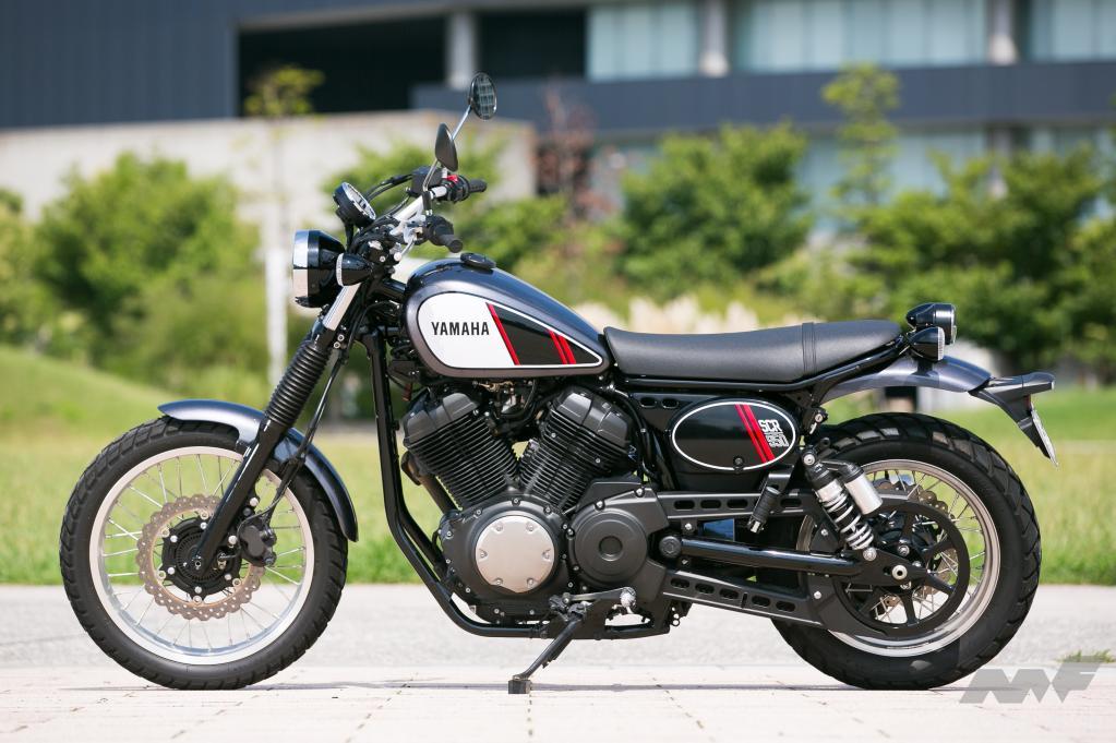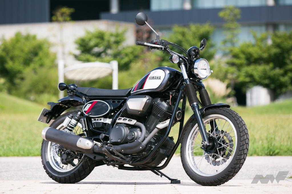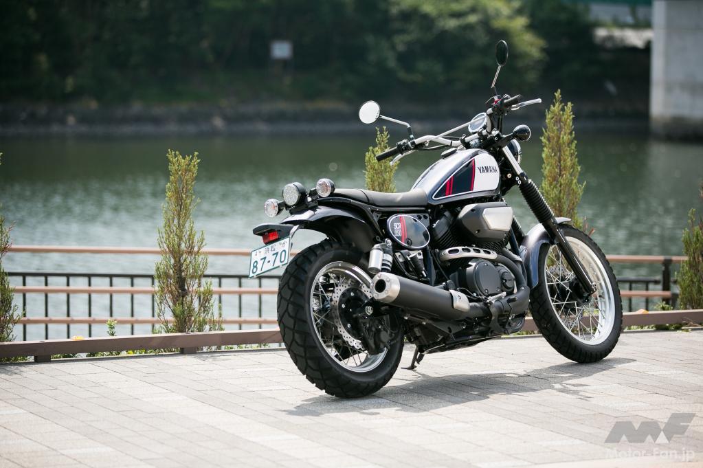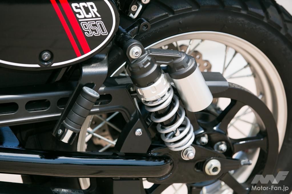 SCR950は941㎤の空冷Vツインエンジンを搭載するクルーザー、BOLTをベースに往年のスクランブラーを彷彿させるネオクラシカルな外観が与えられたモデルだ。ヤマハの中ではXSR700/900などと同じスポーツヘリテイジと呼ばれるジャンルで、懐かしさの中に新しい感性が織り込まれているのが特徴。SCRとはスクランブラーの略である。ちなみにスクランブラーとは、元々はオンロードバイクで荒地を走るために改造されたマシンのことで、最近のネオクラブームの中で人気が高まりつつある。
