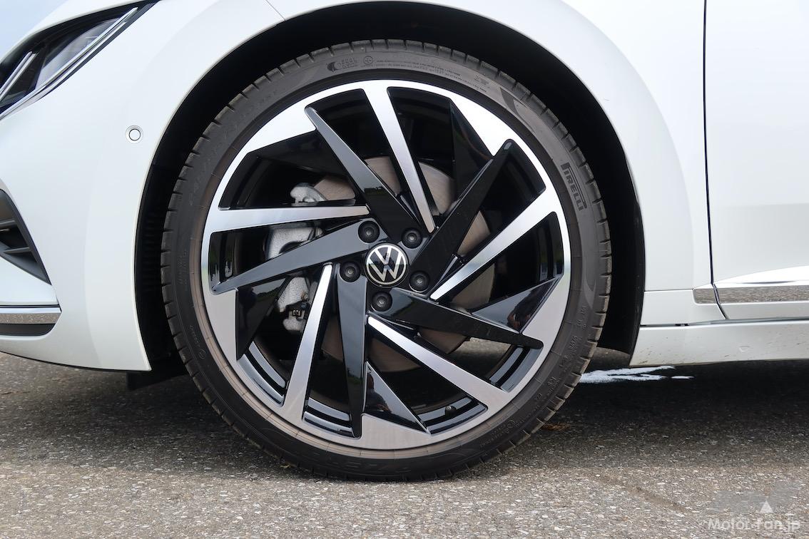 パワートレーンも違う。パサート・ヴァリアントでガソリンエンジンを選択する場合は1.5ℓ直4ターボで駆動方式はFFになるが、アルテオン・シューティングブレークは2.0ℓ直4ターボを搭載し、駆動方式は4MOITON(4WD)だ。動力性能面と運動性能面でもスポーティな設定がなされている。タイヤ&ホイールの設定もスポーティで、パサート・ヴァリアントが17〜19インチサイズを設定するのに対し、アルテオン・シューティングブレークは19〜20インチの設定だ。
