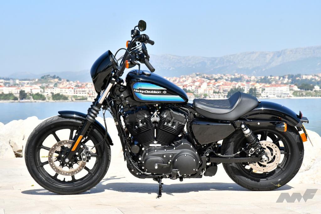 今回、クロアチアで開催されたジャーナリスト向け新型モデル試乗会で乗ったのは、アイアン1200。ミニエイプバーと呼ばれる大胆に持ち上げられたハンドル、そしてビキニカウルやラバー製のフォークカバーで不良っぽいフロントマスクを演出し、70年代に流行ったチョッパースタイルを再現。これを違和感なくやってのけるのは、もはやハーレーしかないのかもしれない。
