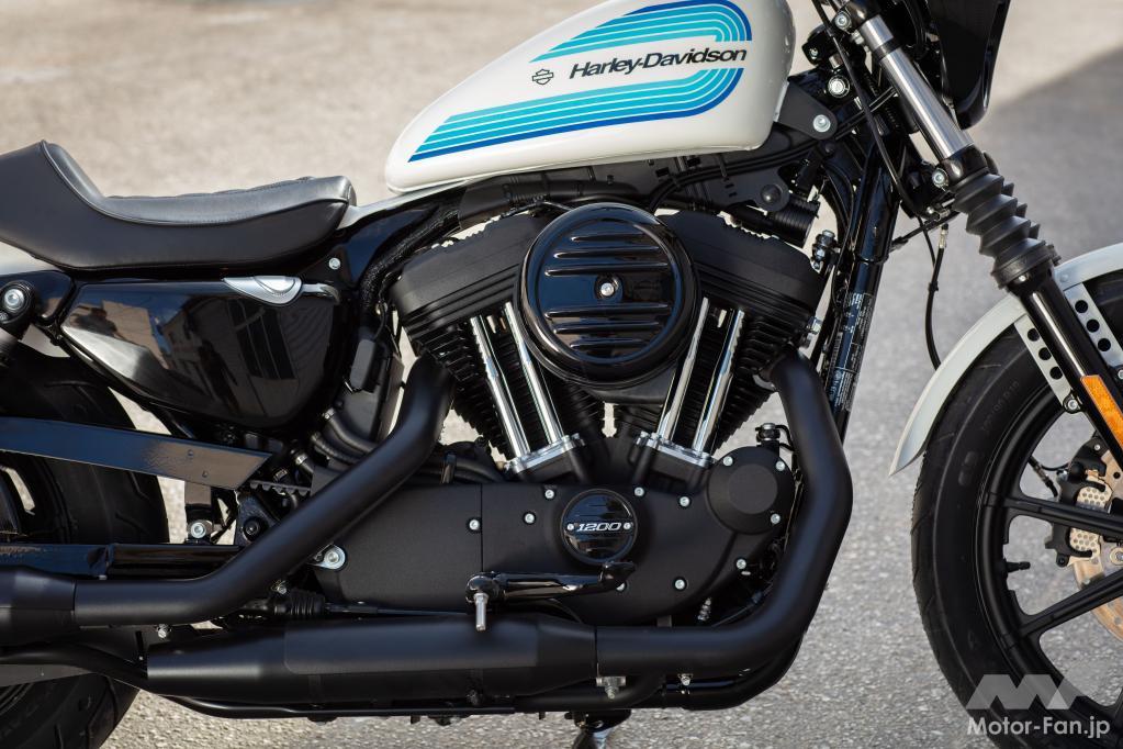 なかでもスポーツスターは、筋金入りのレトロ路線。まずエンジンは空冷Vツインであることはもちろん、プライマリーチェーンを介して駆動力をトランスミッションに伝えるという古めかしさで、日本車で言うなら1973年発売のカワサキ650RS W3で見られたのが最後。OHV2バルブのロングストローク設計で、現行型の排気量は1200ccと883ccのいずれか。「エボリューション」と呼ばれ、初代が登場したのはなんと1986年のことである。