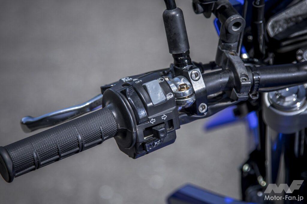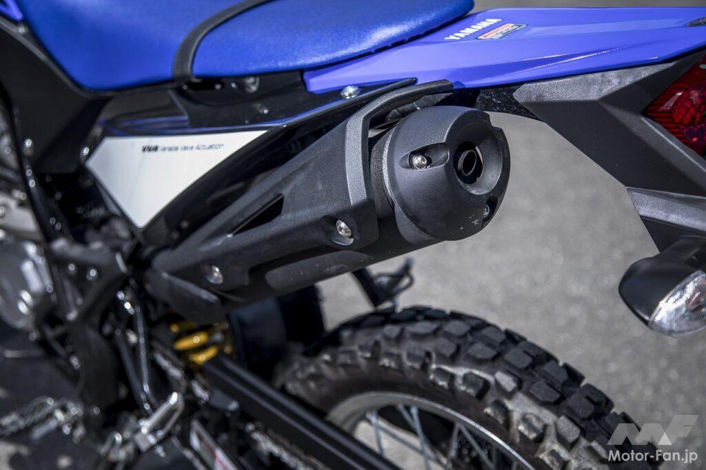 キルスイッチの下にあるセルスタータースイッチを操作してエンジンを始動します。しっかりと消音されたエキゾーストノートがマフラーから放たれますが、このWR155Rのマフラーは左出しという珍しいタイプを導入しています。左側通行の日本では騒音的に不利になりますが、耳障りな音を発生するわけじゃないので、現実的にはなんら問題はなさそうです。