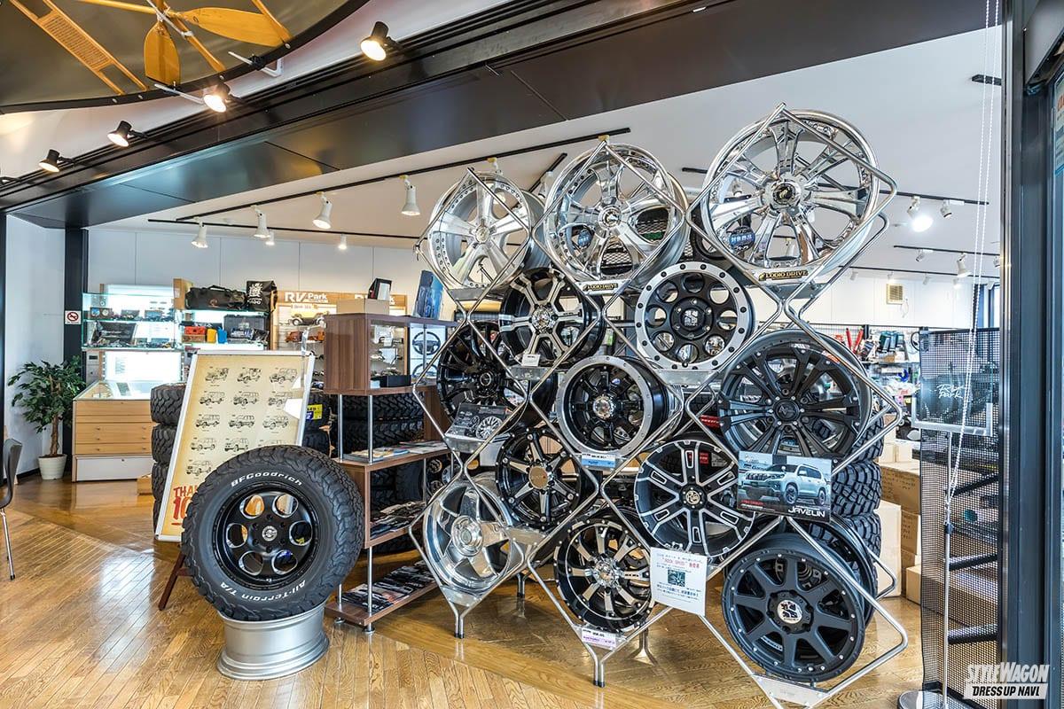 ここでは新車ディーラーという概念を覆すような、自由な雰囲気で多種多様のアフターパーツを提案する。