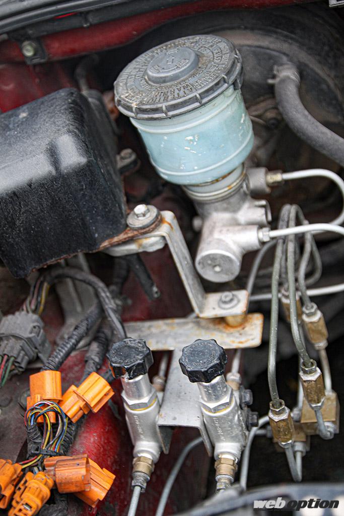 ブレーキはパッド交換(アクシス・タイプR)に留めているが、ブレーキバランスが速さに直結すると判断して前後独立した調整式Pバルブを装備。「キャリパー自体は純正でも特に問題はありません。しかし、本気で攻めるとなるとブレーキバランスの調整は不可欠です」とはオーナー。また、軽量化の意味合いもありABSは潔く撤去している。