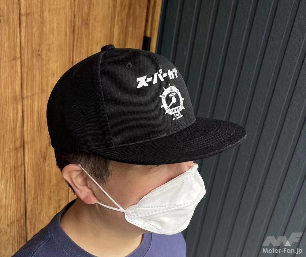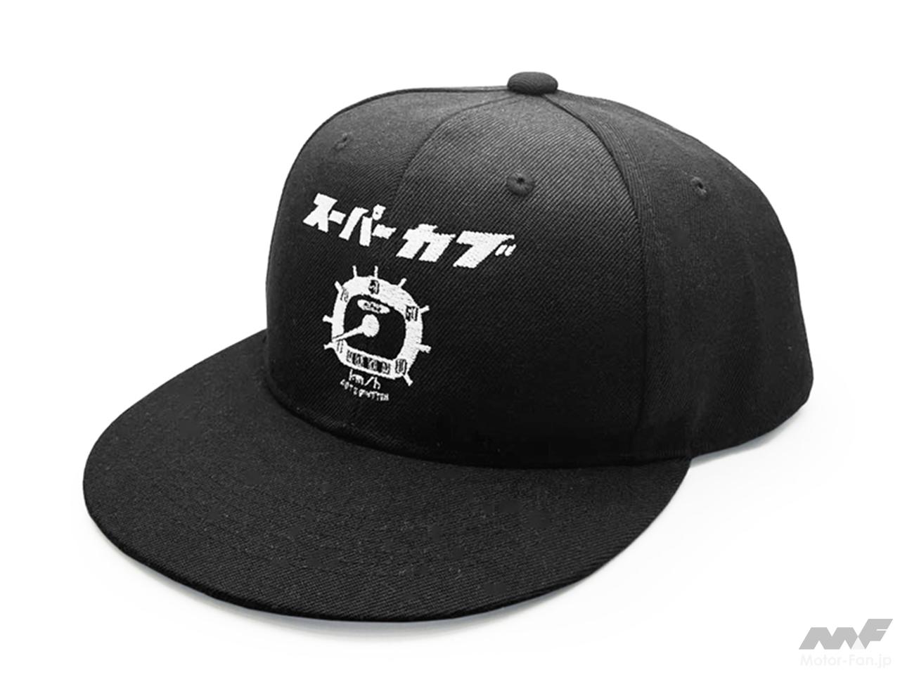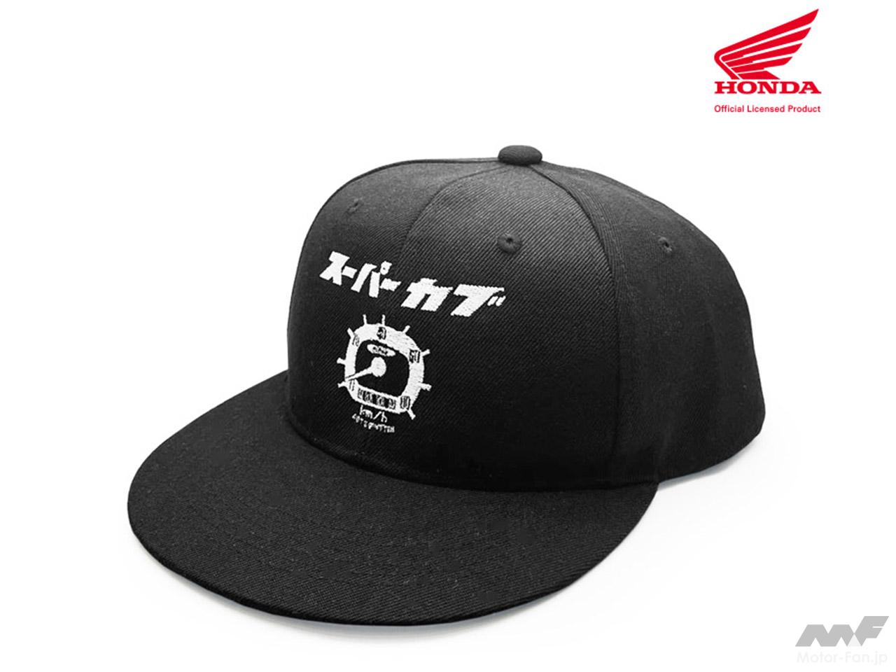 写真のキャップは、懐かしのスーパーカブをイメージさせる刺繍をデザイン。初代スーパーカブのC100、またセルフスターター付きのC102など、初期のカタログに用いられた、懐かしの“スーパーカブ”のロゴに加え、初期のスーパーカブ用をイメージしたスピードメーターの刺繍をレイアウト。カブフリークにはたまらないフォルムに仕上げている。