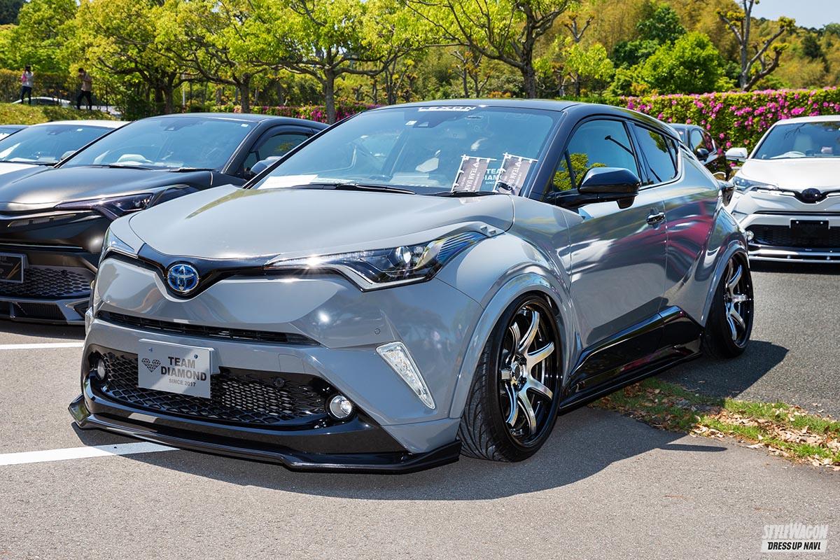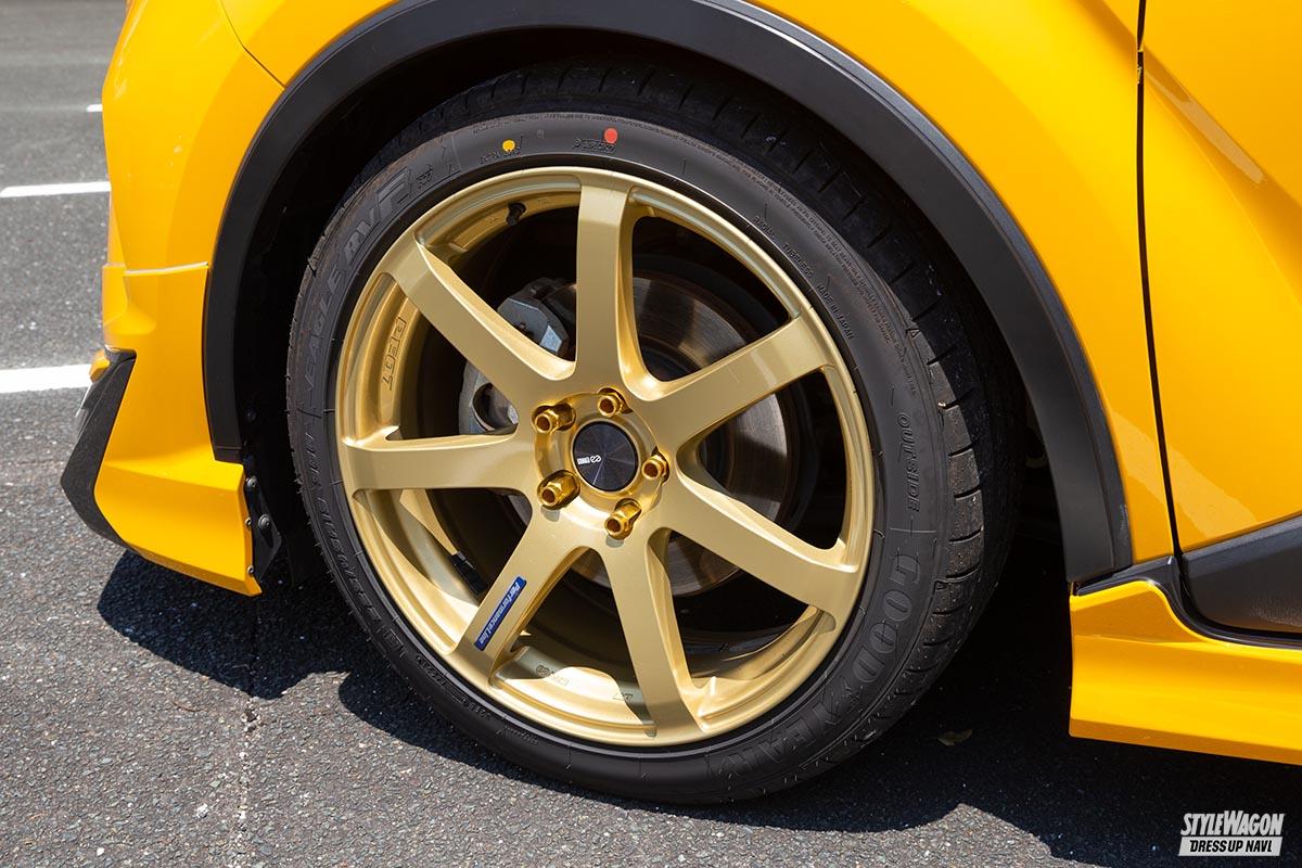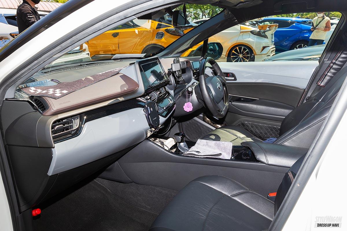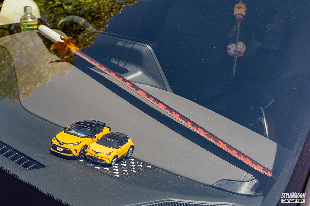 かつてムーヴのマニュアル車でジムカーナに参戦していたというemiyuさん。「クルマはキビキビとした走りのキレが大事」ということで、C-HRも2019年のマイチェン後に追加された6MTを選択。ホイールもエンケイのスポーツタイプを装着。ダッシュボードに置かれた模型の日本刀は、「鬼滅の刃」の稀少なオフィシャルグッズだとか。