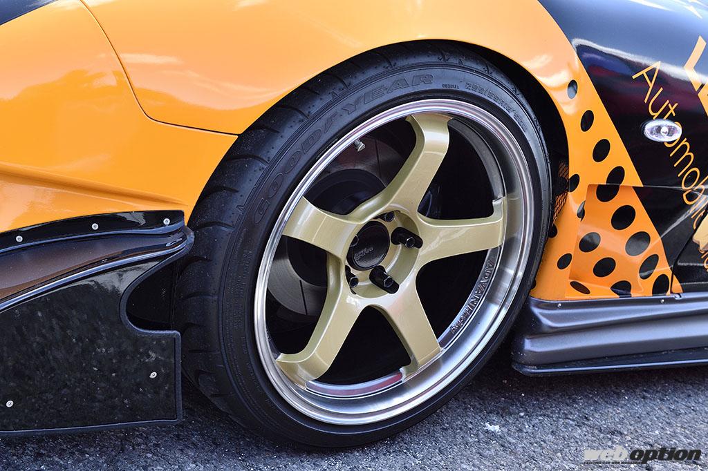 もちろん、見どころはラッピングだけではない。エアロパーツは異なるブランドをミックスして個性を主張。具体的には、フロントバンパー&サイドステップがRE雨宮で、カーボンのアンダーパネルはボディショップニュータイプでワンオフ制作したもの。