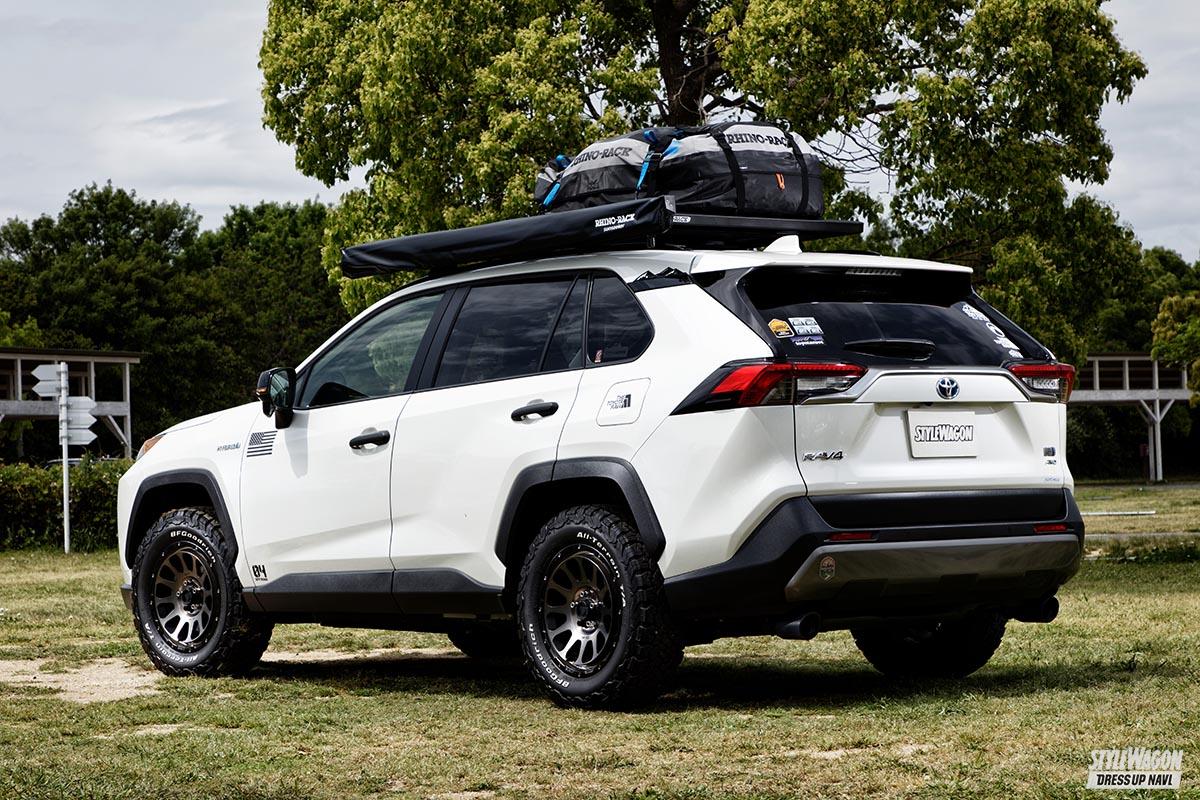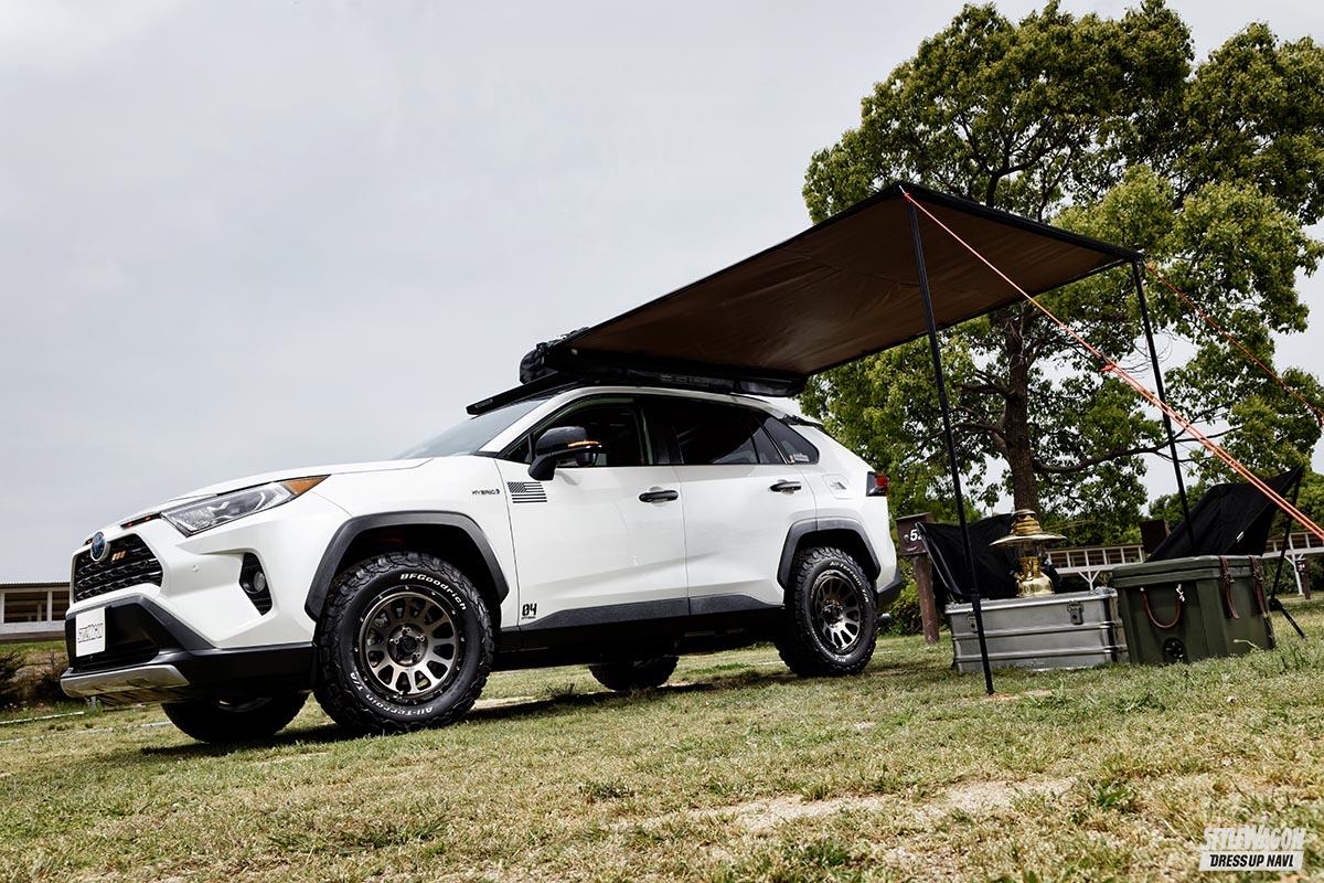 スタイリッシュで洗練されたシルエットで人気を馳せるRAV4は、街乗り仕様でももちろん映え度はバツグン。とは言えその素性はRV寄りのSUVだから、やはりオフ系スタイリングがよく似合う。