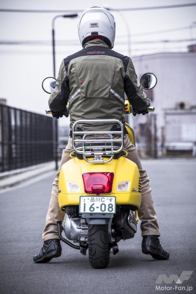 ジェラシーイエローをまとった試乗車は、クロームのリヤラックと、小さめなフライスクリーンが装備されていたが、これらはオプション装備。なので、外観デザインは150 と全く共通といえる。150 ではスペランツァグリーンの鮮やかな色合いが魅力的だったが、今回のGTS スーパー300のボディカラーはジェラシーイエロー。クリアで艶を出さず、あえて細かな凹凸感を残した艶消し処理で、国産車ではあまり見かけない色ではあるが、さすがイタリア人のセンス。不思議と都会の街並みにも馴染んでしまう。ちなみにカラーバリエーションは例のスペランツァグリーンとモンテホワイト、チタングレー(受注生産)の4タイプだ。