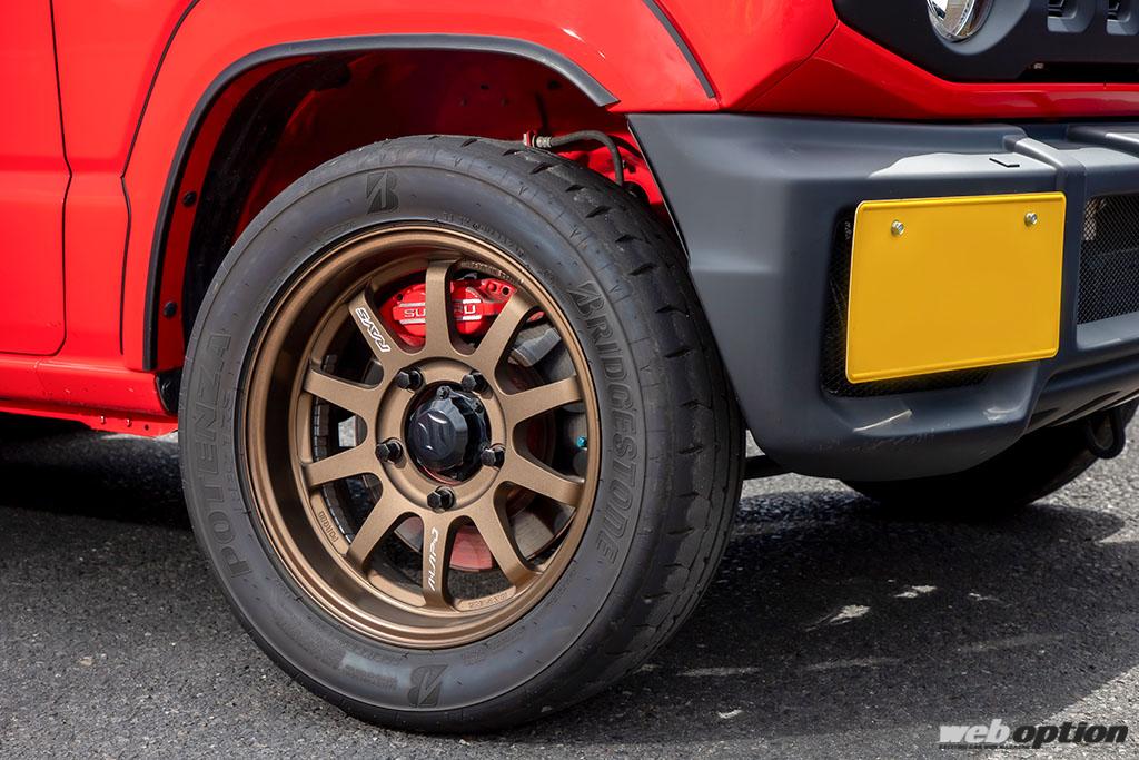 組み合わせるホイールは、レイズがジムニーのために開発した鍛造1ピースのA・LAP-J(5.5J±0)。