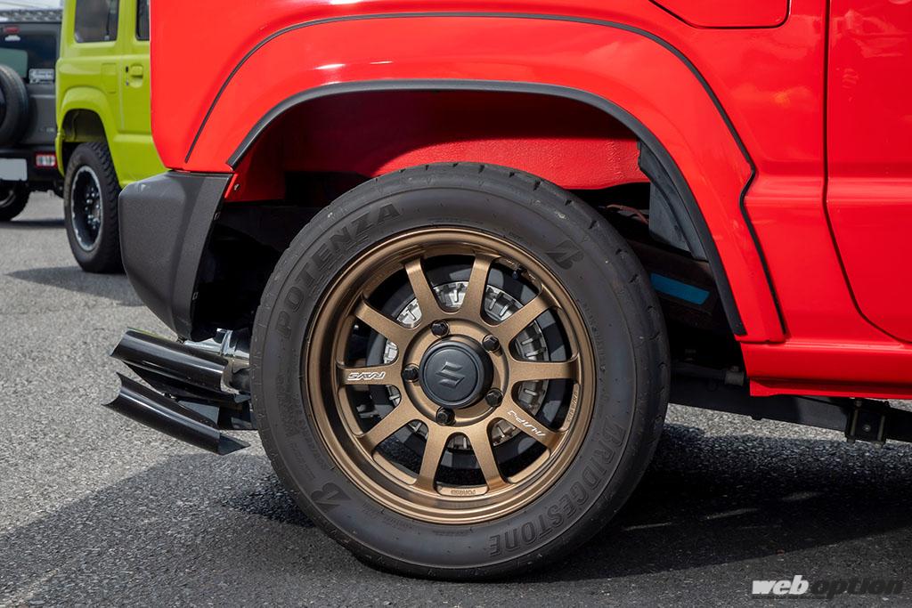組み合わせるホイールは、レイズがジムニーのために開発した鍛造1ピースのA・LAP-J(5.5J±0)。