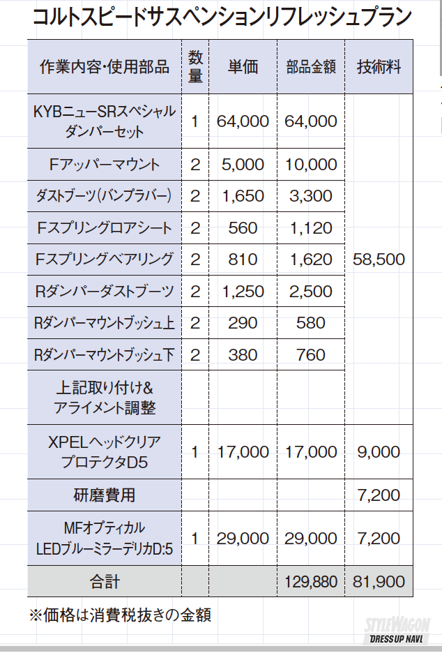 ちなみに車高は変わらずのまま。変わったのは走行速度。確実にアップした。足が良いからだ。今後、タイヤ&ホイールをカスタムしてブロックタイヤに履き替えたり、車高をチョイアゲしたらどう印象が変わっていくんだろうか? 大いに楽しみではある。