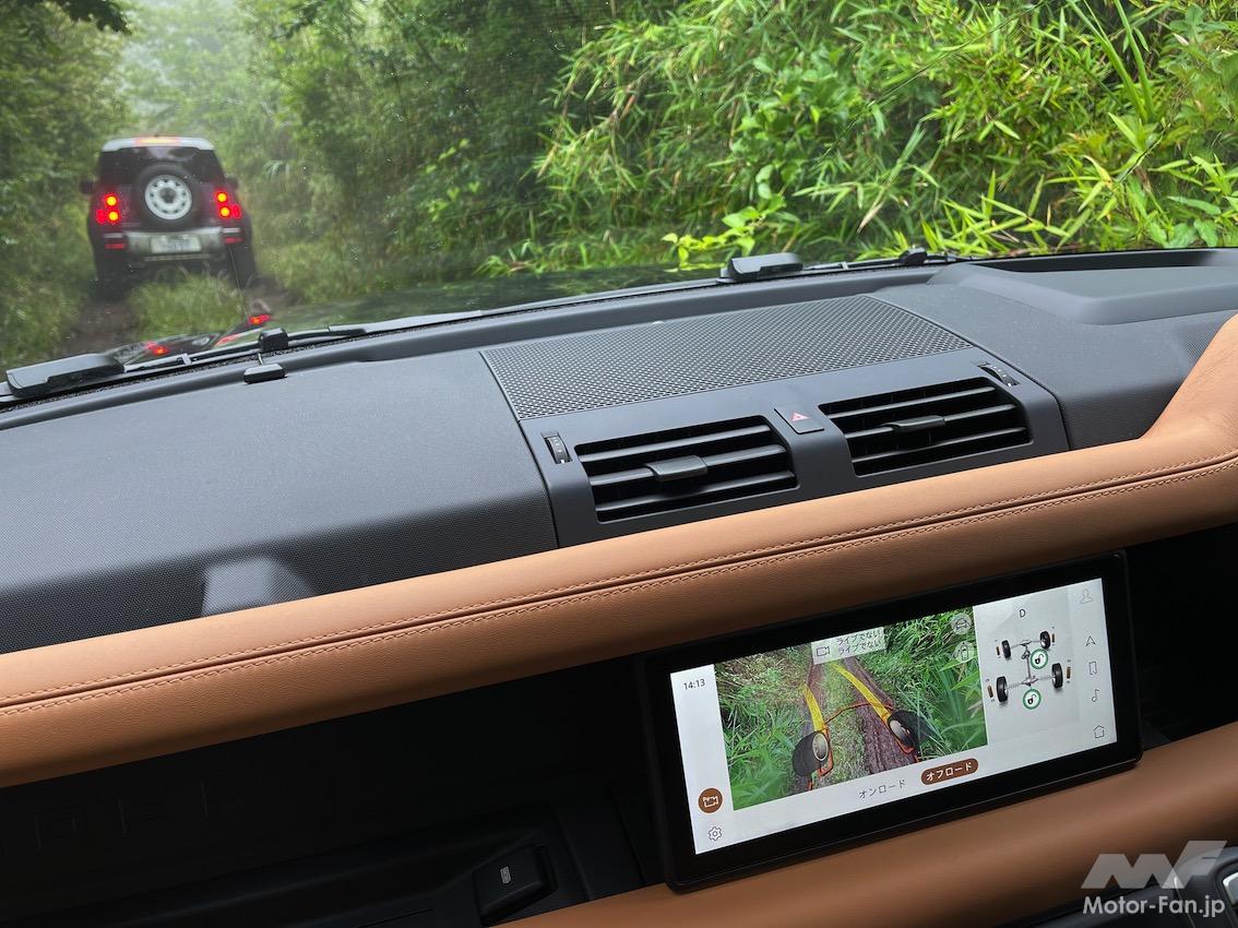 カメラで捉えた映像を前輪のグラフィックと合成し、ボンネットを透過して地面を見るような視界を提供するクリアサイトグラウンドビューなど、最新のテクノロジーもディフェンダーの魅力で、悪路走行での安心感につながる。