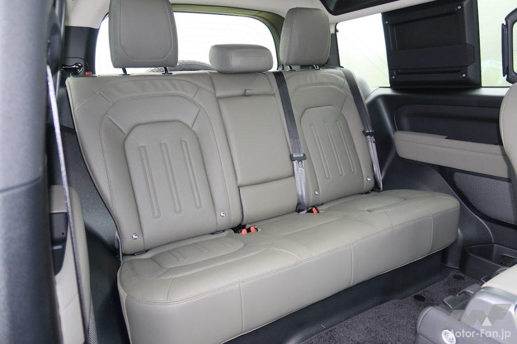 エアサスペンションの機能を利用することで、乗車時は40mm車高を下げることができる。それでも、「はて、これは一体どうやって乗り込もう」と考え込んでしまうくらい、フロアの位置は高い。しかも、90は3ドアだ。後席に乗り込むには、前席を前に倒しつつスライドさせ、V字に開いた隙間から体をもぐり込ませなければならない(前席の肩口に操作レバーとスイッチが付いている)。