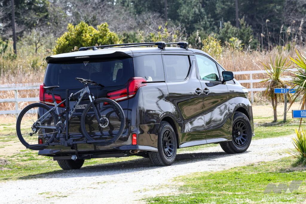 また、ルーフにはルーフラックやシステムキャリアを装着できるベースフット、リアにも積載性を高めることができるヒッチメンバーをセット。今回はマウンテンバイクを積んで、アウトドア感を底上げしている。
