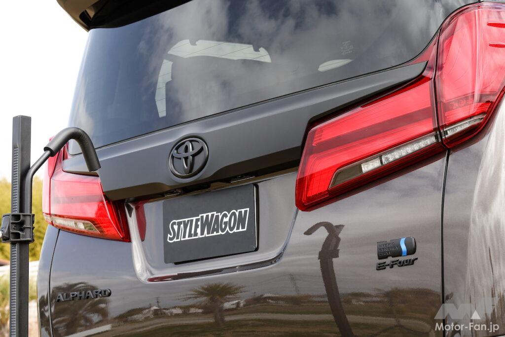 核となる足元にプラスして、アルファードの純正メッキ部分をすべてマットブラックにラッピングしているのも見逃せないポイント。いわゆる「メッキデリート」というコーディネイトで、あえてキラキラ感をなくし、マッシブな雰囲気を底上げしている。