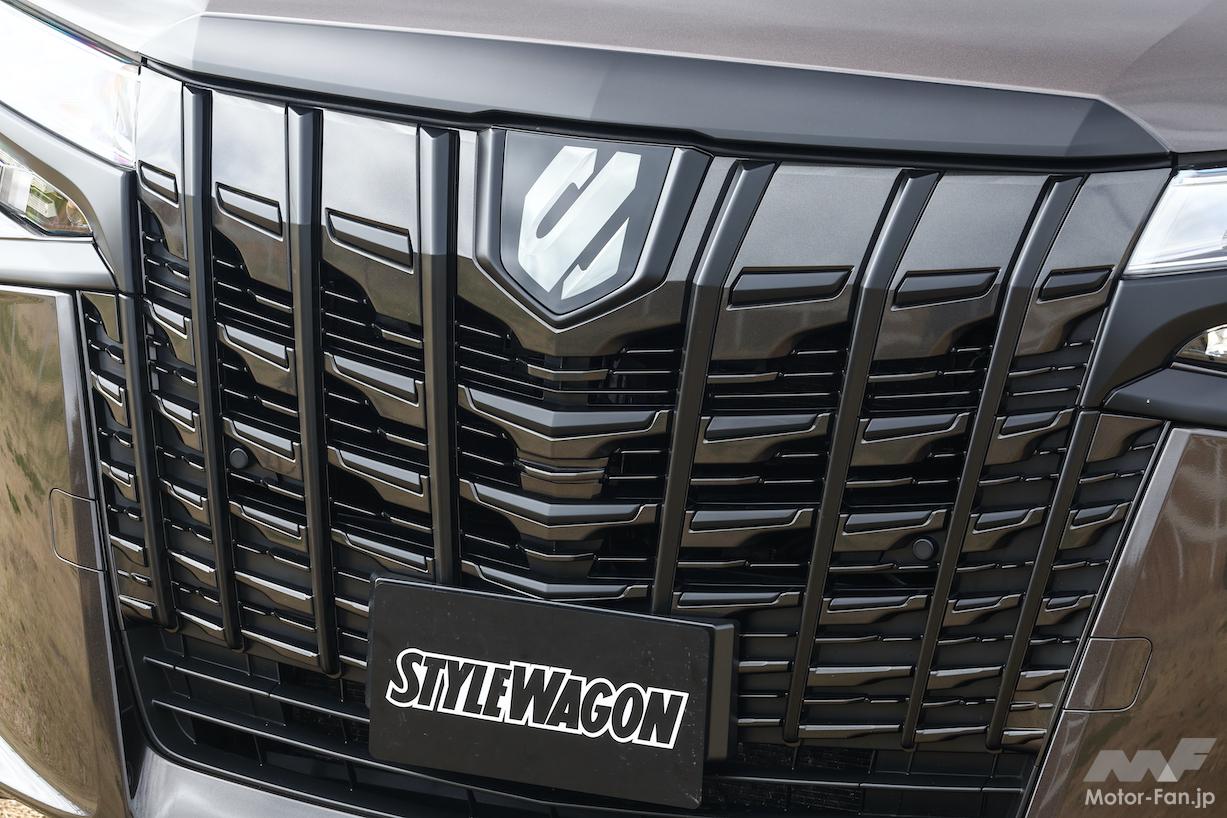 核となる足元にプラスして、アルファードの純正メッキ部分をすべてマットブラックにラッピングしているのも見逃せないポイント。いわゆる「メッキデリート」というコーディネイトで、あえてキラキラ感をなくし、マッシブな雰囲気を底上げしている。