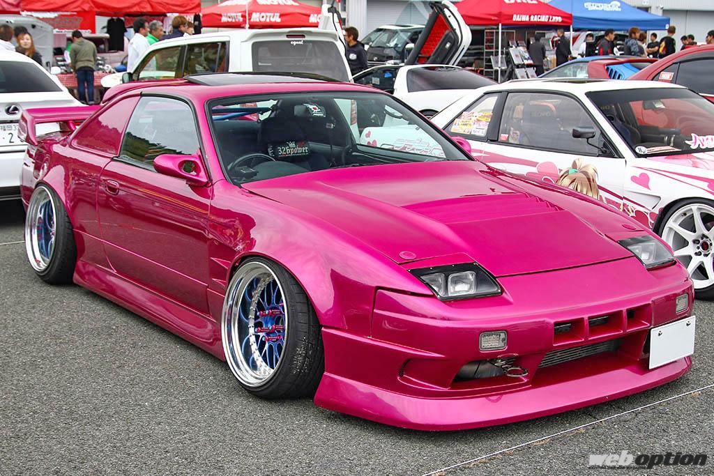 顔は180SX、お尻はS14、そして室内はS15という歴代シルビアの欲張りセットとも言うべきこのチューンド。完全にショップデモカーレベルのルックスだが、それにも動じずドリフトをガンガンこなすオーナーの走り屋スピリッツには感服だ。(OPTION CARAVANより抜粋)