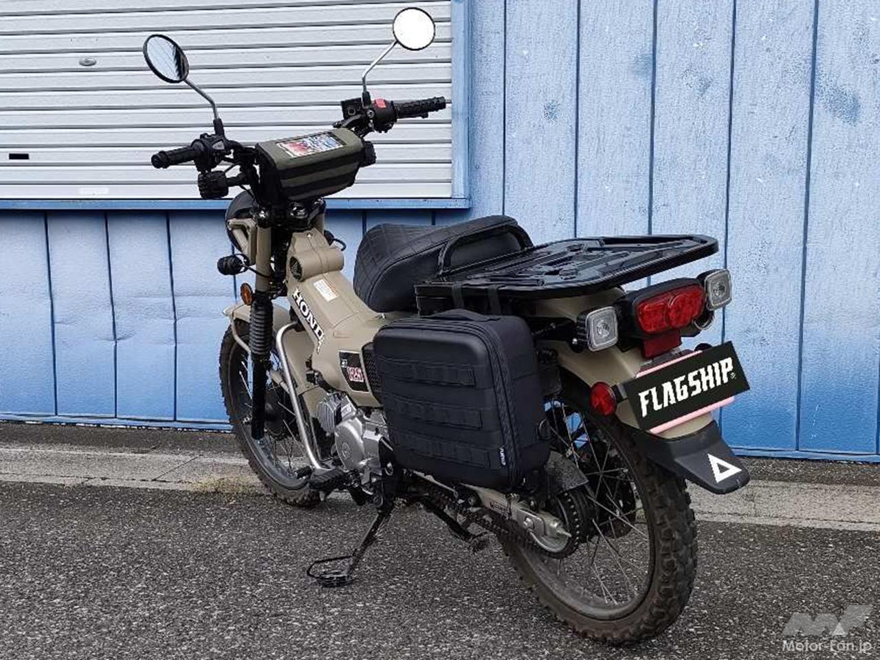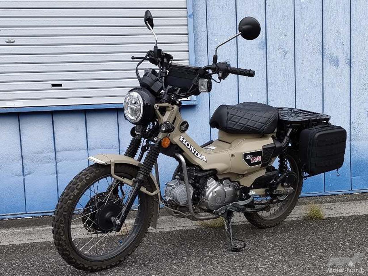 レジャー、アウトドア、キャンプに大人気のホンダCT125ハンターカブ。荷台の大きなハンターカブは、積載性も抜群。ケースやバッグを装着しやすいのが特徴だ。