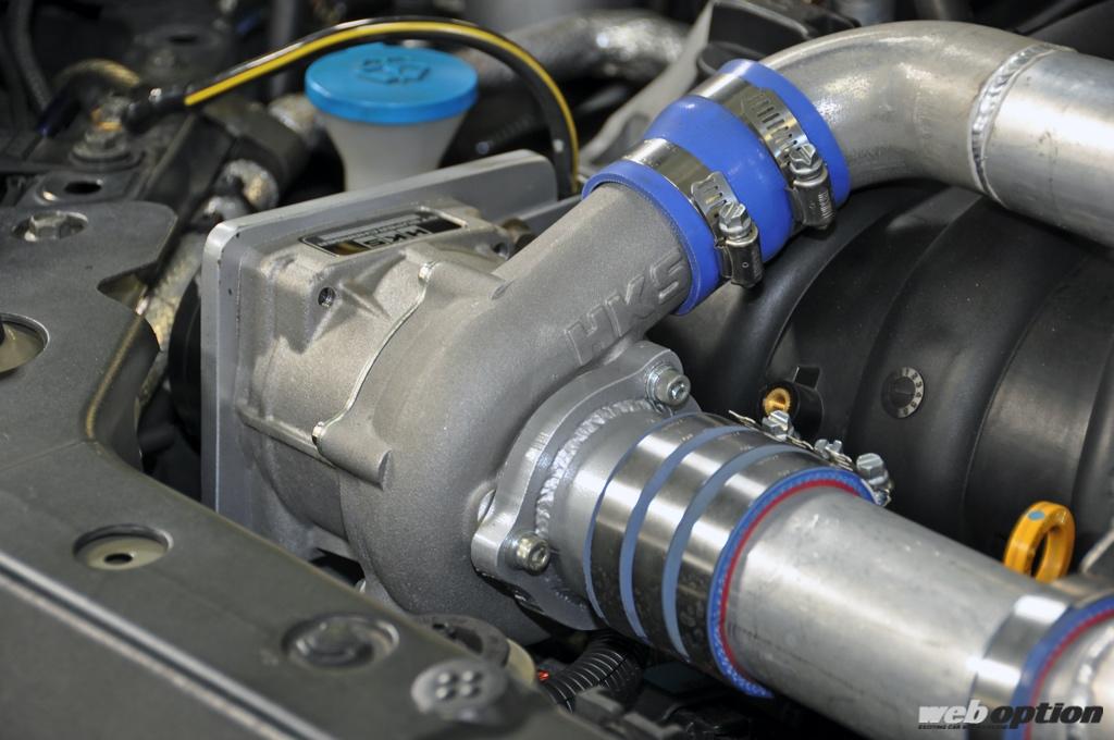 なお、スーパーチャージャー本体にはHKSのGTS4015HPを使い、ブースト圧のピークを0.4キロに設定(全開域ではエンジンの耐久性を考慮して0.2キロ)。結果、ピークパワーに対して9割以上の出力が3800~5300rpm、同じく9割以上のトルクが3500~5000rpmの間で保たれるワイドレンジなハイスペックに仕上がった。