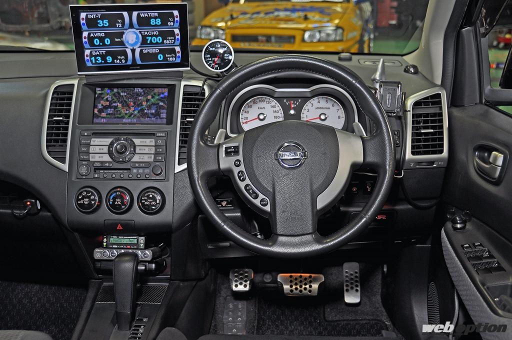 室内にはブリッツのR-VITを装備して各種データをモニタリング。コンソール上にマウントされたデフィのブーストメーターが過給機仕様を物語る。