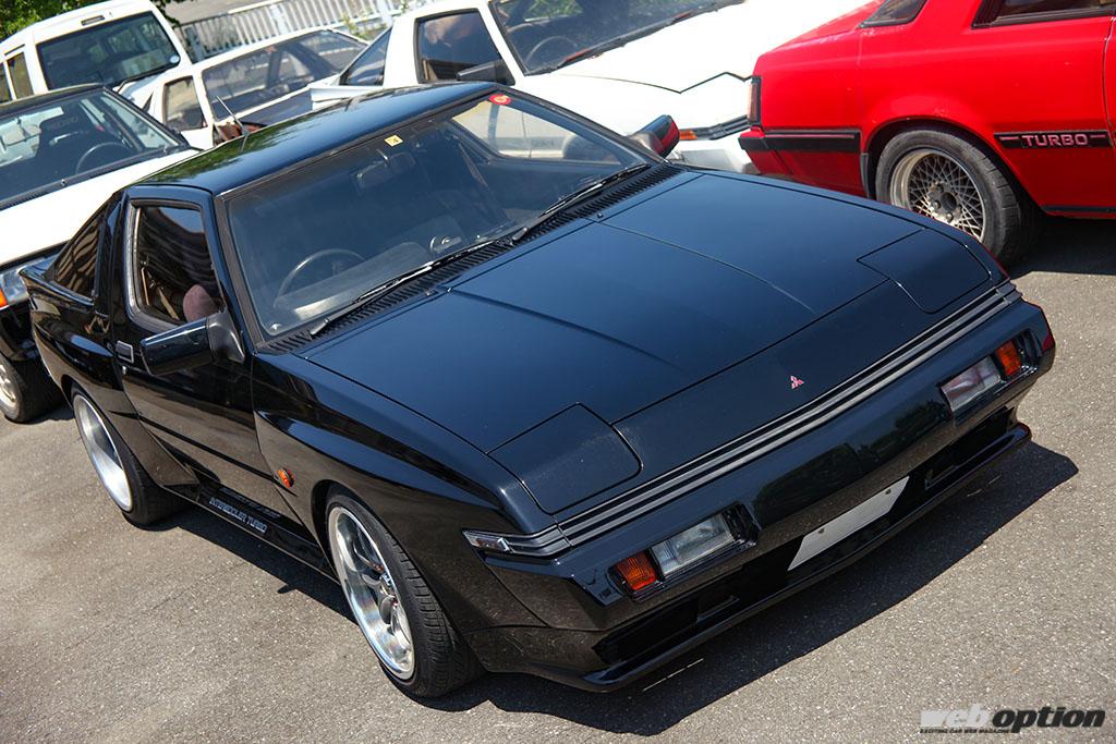 もう一台の黒いランタボは、ドイツ仕様(左ハンドル)のA176Aがベース。シングルカムの4G63エンジンを搭載する国内では未設定の2.0Lターボモデルで、国際ラリー参戦用のベースとして逆輸入された53台のうちの1台だという。