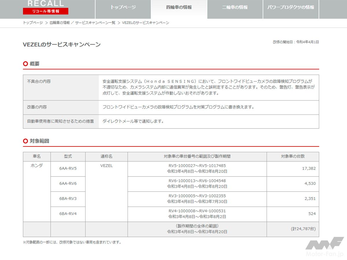 サービスキャンペーン該当車はホンダのHPで確認できる
