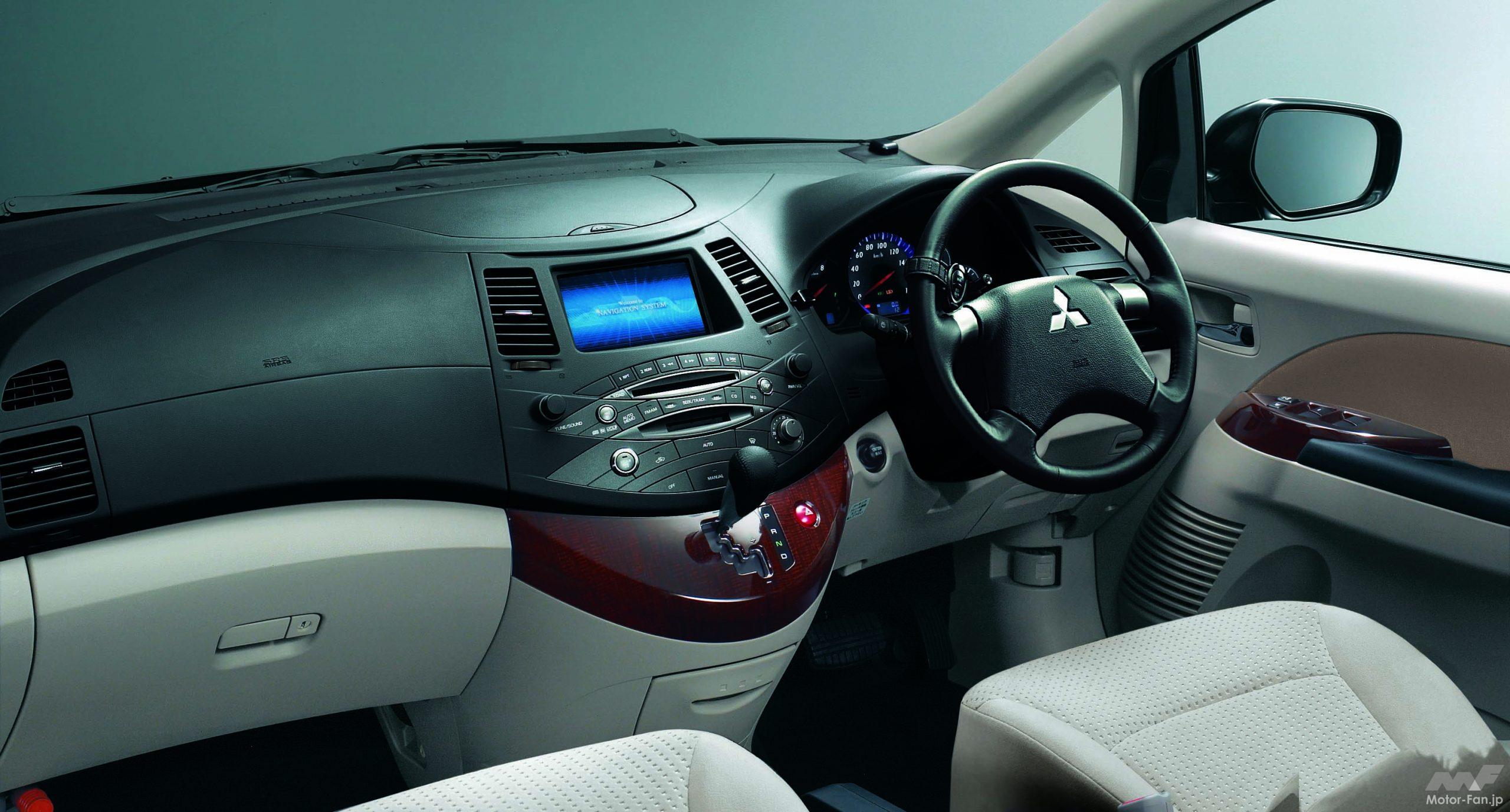 三菱グランディスは、2003年に発売されたロールーフミニバンだ。シャリオの後継モデルとして位置付けられ、ミニバンとしての快適性を追求しながらも、スポーティさを兼ね備えることで、ユーザーの”持つ喜び(エモーショナルデザイン)”、”乗る喜び(スマートパフォーマンス)”、”選ぶ喜び(パーソナルコーディネーション)”を実現する、新しい価値観をもったクルマを目指して開発された。特徴的なのは、2005年に追加されたSUVテイストと力強さを兼ね備えたグレード、「スポーツギア」だ。悪路走行時の走破性に優れたマルチセレクト4WDシステム(4WD車のみ)やASC(Active Stability Control system)/TCL(Traction Control system)を標準装備するとともに、新たに17インチの大径タイヤを装着、車高も15mm高めるなど走破性を向上させた。最近は、見た目だけのクロスオーバーモデルが少なくないが、このスポーツギアは、さすがは三菱。しっかり悪路走行にも対応したグレードとなっている。