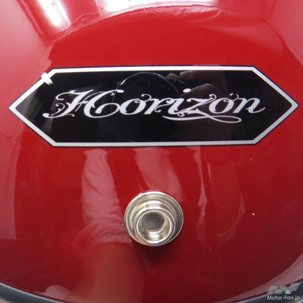 写真は新進気鋭の香川県のヘルメットメーカー「HORIZON」と、「カブの駅こうべ(MOTOBLUEZ)」が共同開発した、最新モデルのフルフェイスヘルメット「MXH4」。