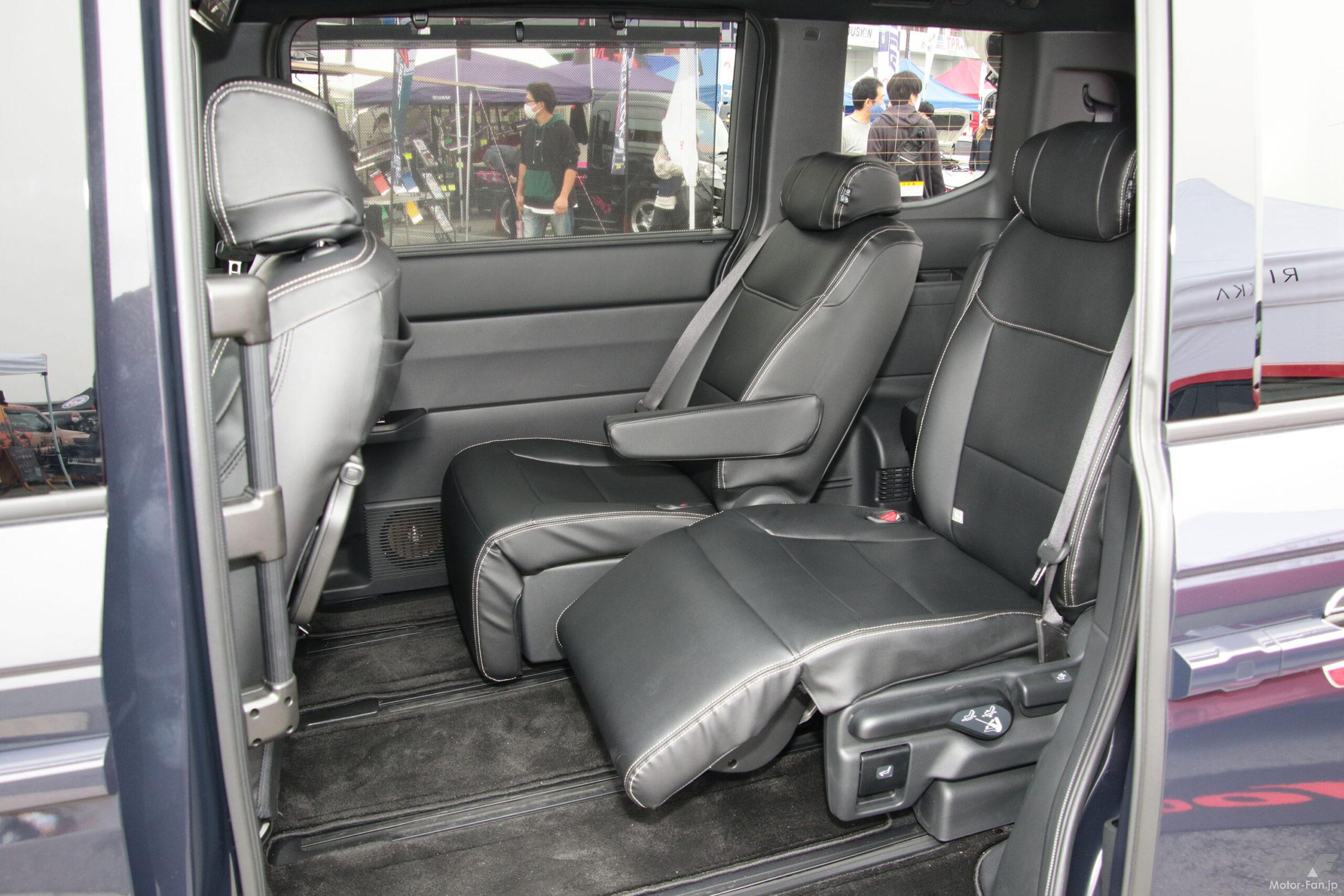 今回展示された「スパーダ」には、ダーククロームメッキのフロントグリルとフォグライトガーニッシュ、16インチアルミホイール「MG-029」を装着。ベース車とはひと味違う、ギラつきと懐かしさを併せ持ったエクステリアに仕上げている。