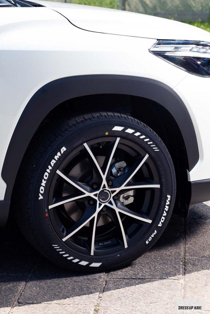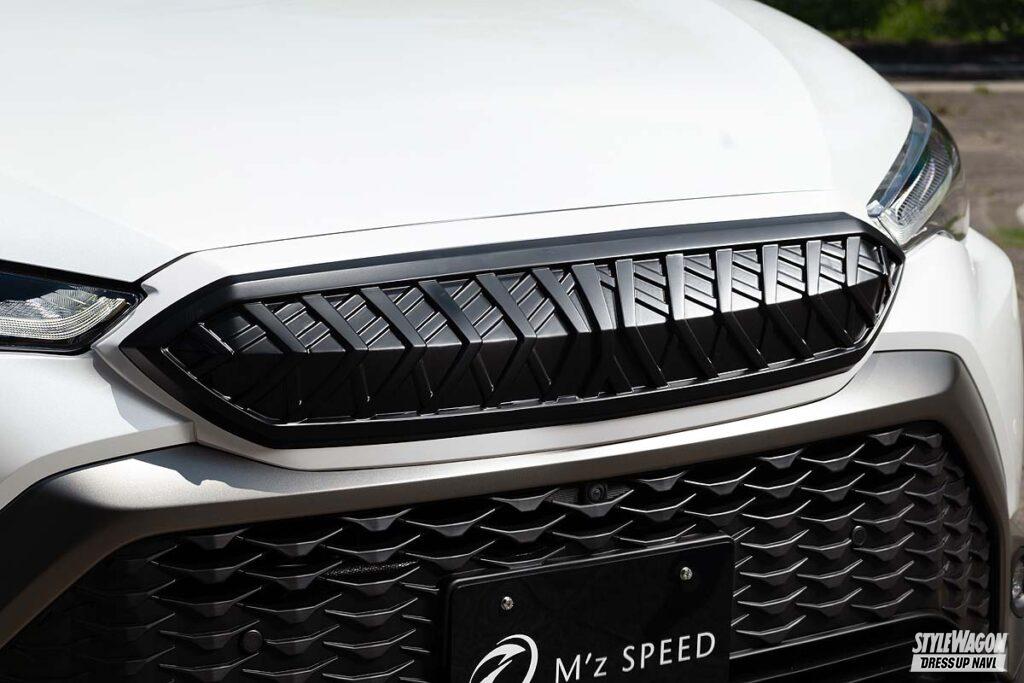 新型SUVの中でいま販売が好調なカローラクロス。各パーツとも純正デザインを生かすように、立体的なブロックデザインを採用しているのが特徴的だ。