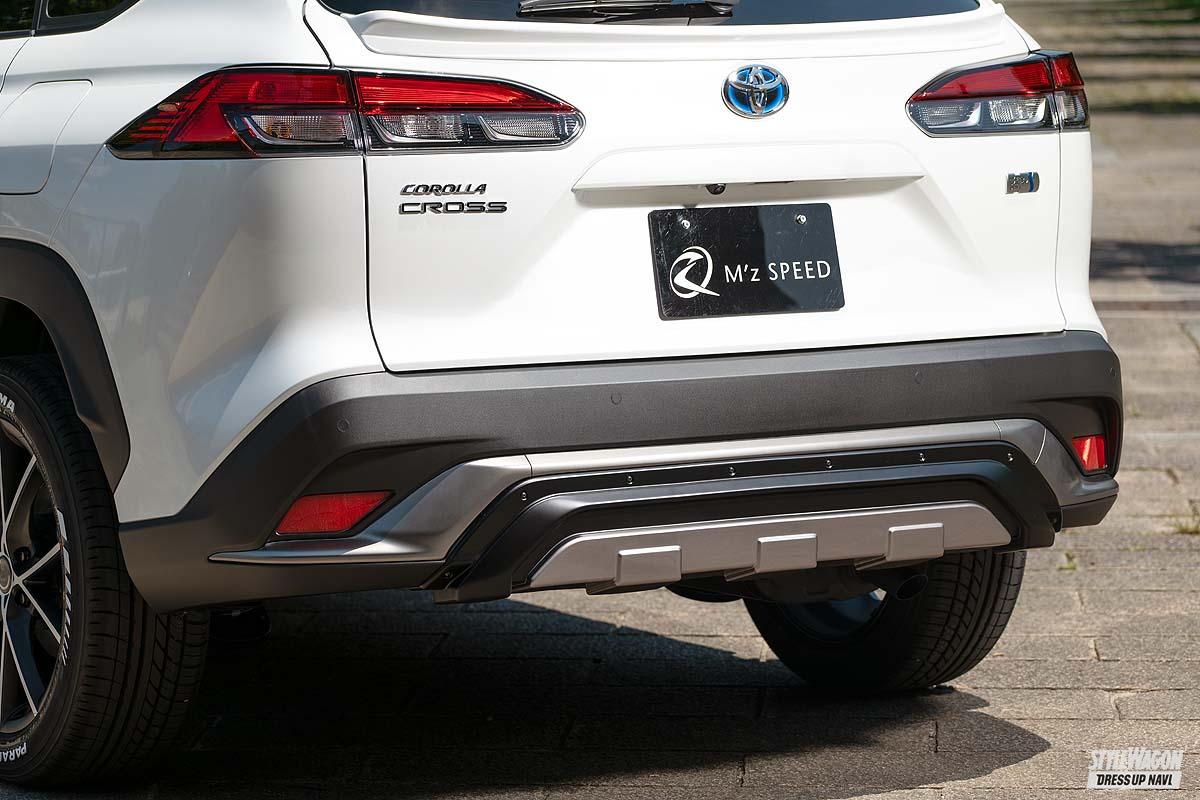 今作のカローラクロス用ボディキットは、クロスラインからのリリース。前後のスポイラーは、凹凸を設けたラギッド感あふれるデザインで、どこかスマートなカローラクロスに力強さをプラス。アウトドアにマッチするスタイルを確立している。