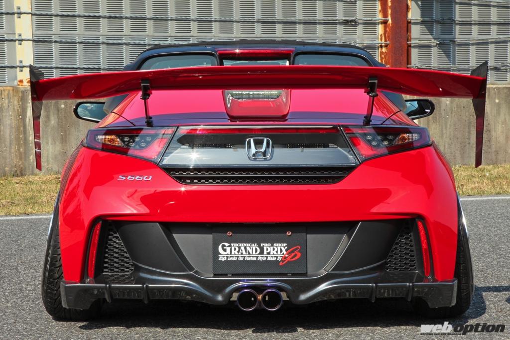 ちなみに、S660はタイヤハウスが狭くて車高を落としにくいが、ナックルやアーム、車高調をワンオフ加工してクリア。ダミー処理された開口部のメッシュ形状を変えずに穴開け加工するなど、細かな技も随所に効かせている。
