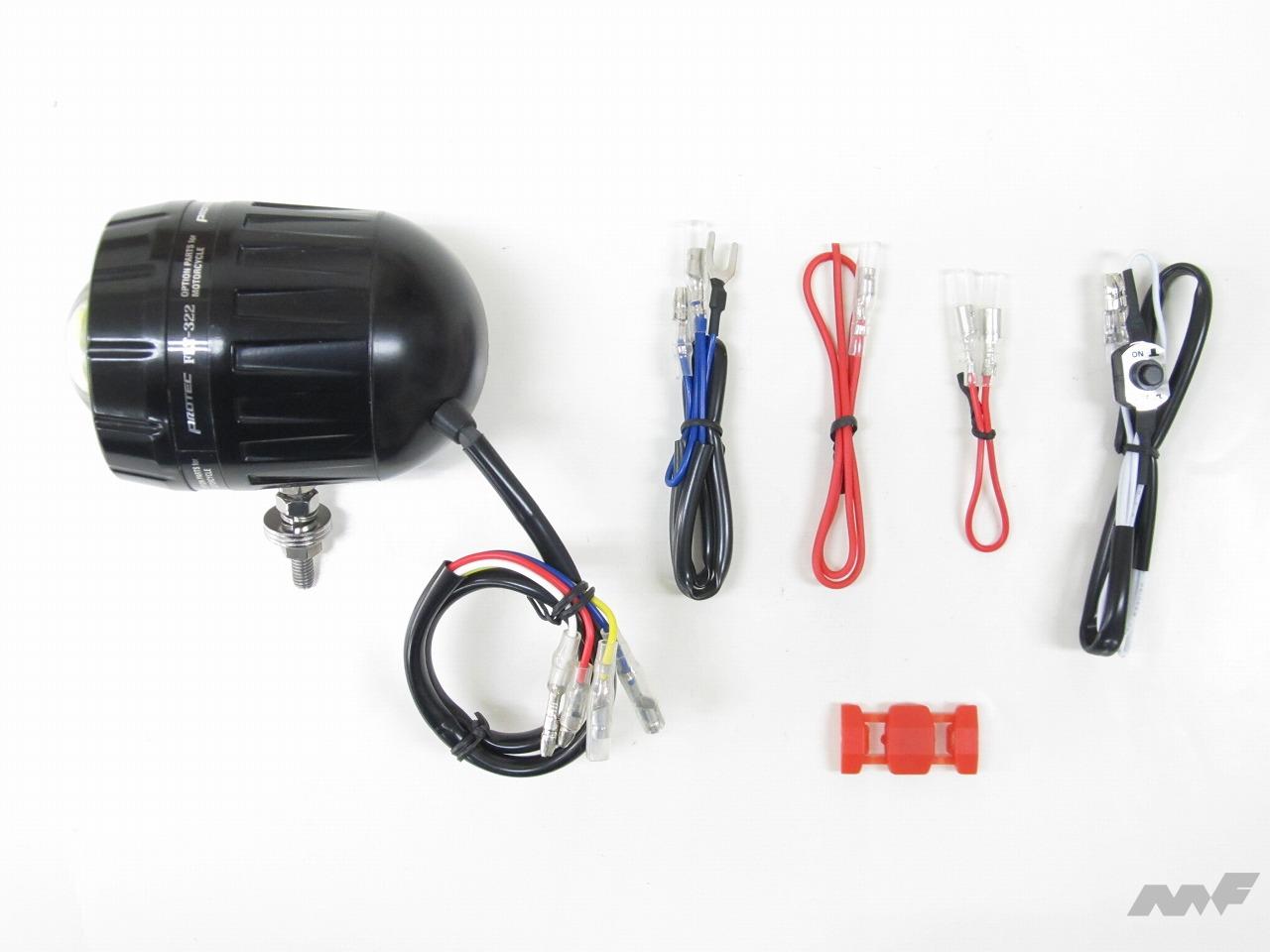 電源を入れた後、6~10秒でフルパワー点灯に到達し、さらに、別売りのエンジン回転センサー(2200円)を追加すれば停車時(アイドリング時)に減光させることも可能だ。