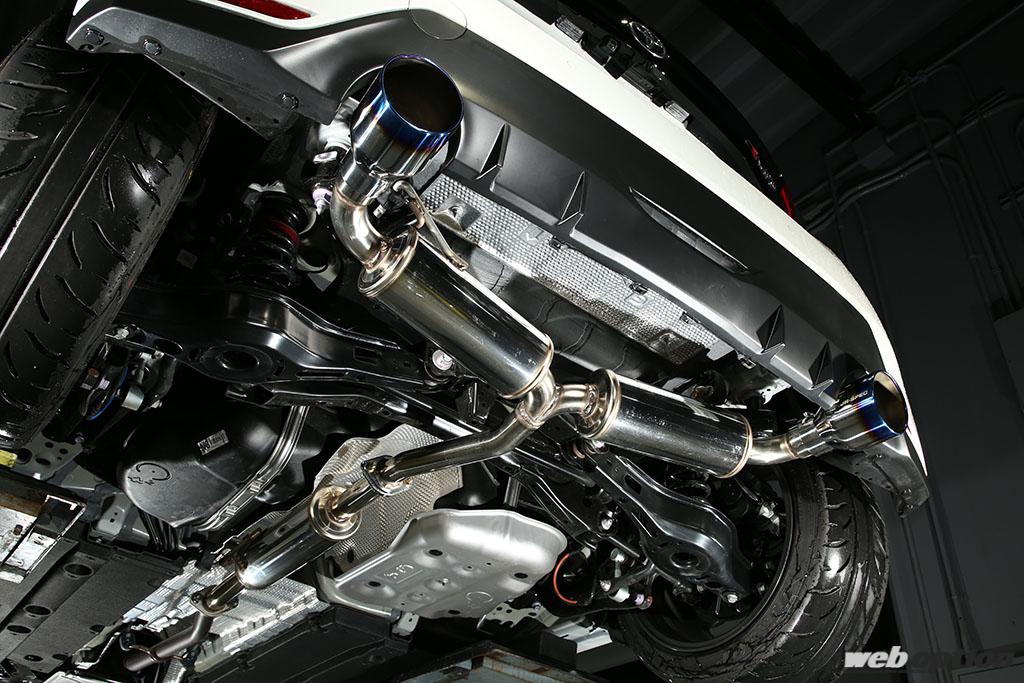 まずエキゾーストマフラーは、伝家の宝刀とも言うべき「NUR-SPECカスタムエディション」を用意(10月発売予定)。基本構造はRZグレード用と同一だが、メインパイプは1.5L・3気筒のM15Aエンジンに合わせて50φへと変更し、スポーツカーらしいフィーリングとサウンドを保安基準の範囲内で追求している。