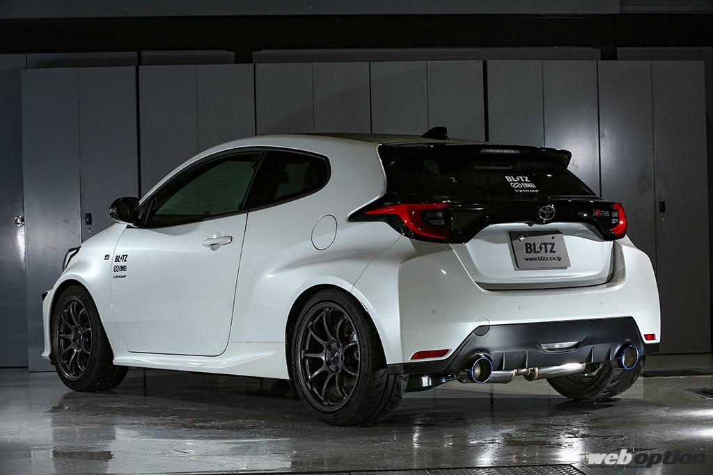 2020年のデビュー直後から開発をスタートさせ、GRヤリスの可能性を追求し続けている“ブリッツ”。無論、それは1.5Lノンターボ+FF+CVTというパッケージの「RSグレード」に対しても同様で、すでに吸排気プラスアルファのチューニングパッケージを完成させているのだ。