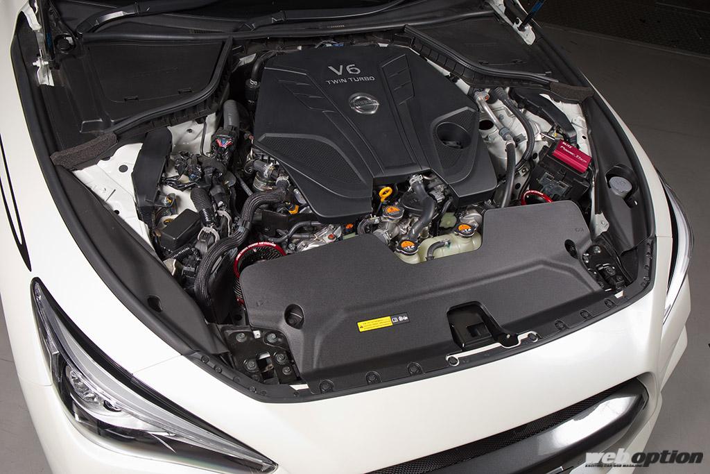 一方の心臓部は、完全カプラーオンのお手軽装着でブーストアップできる独自のパワスロ(8万8000円)を投入。純正ECUを生かした制御を行っているため、安全&簡単にVR30DDTTの潜在能力を引き出せるのだ。