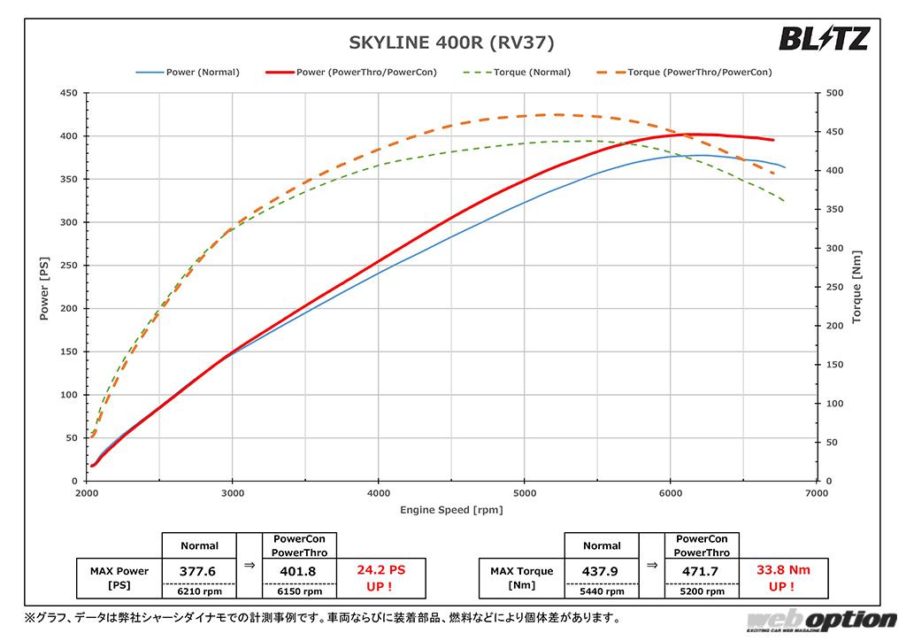 ブリッツではベースグレード(GT)の開発も同時並行で進めており、この400Rに装着されているパーツ群は全てベースグレードに適合することを確認済みとのことだ。スカイラインをさらなる高みへと引き上げたいと願うなら、ブリッツのアイテム群を見逃す手はないだろう。