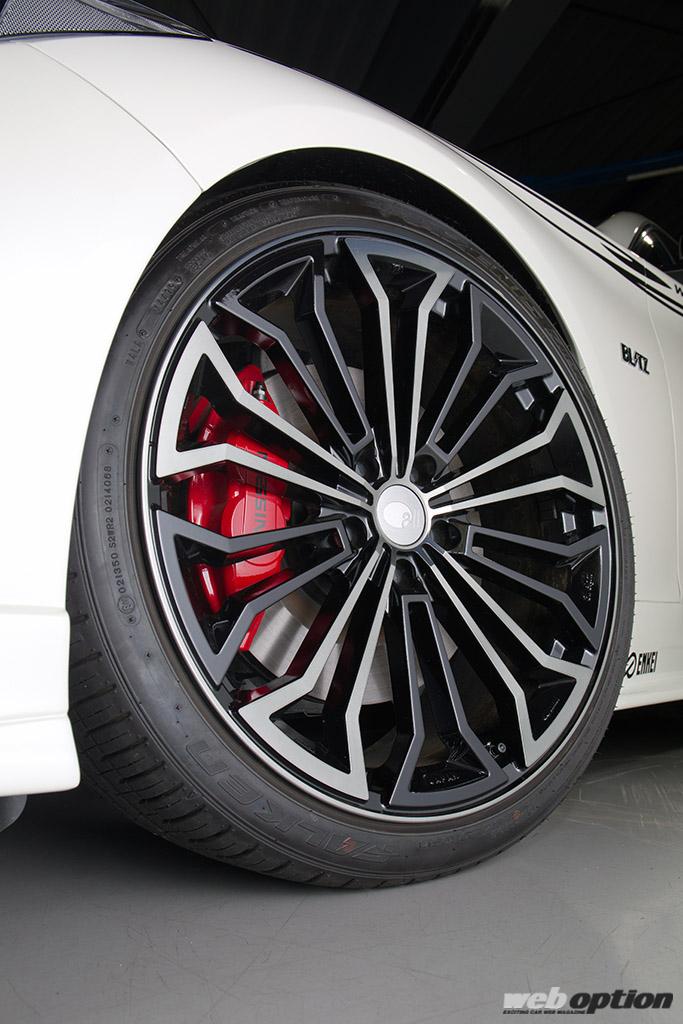 そんな同社の魂が注がれたデモカーが今回の主役。オリジナルのフルボディキットはデリバリーが開始され、その他の機能系パーツも続々とラインナップに加わっている状況だ。早速、ディティールをチェックしていこう。