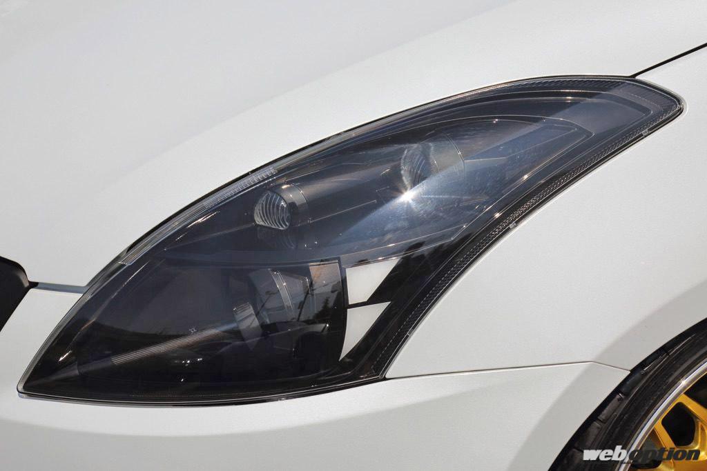 デザイン的に腰高感が強いスイフトだが、ルーフを濃色系でラッピングするだけでも視線が下がりイメージは大きく変わる。この技はスタイル問わずに効果抜群なので参考にしていただきたい。