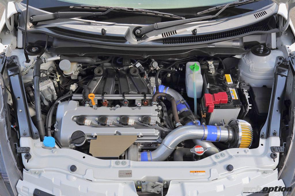 『ルックスだけでなく走りも刺激的に』との考えから、心臓部にはトラストのボルトオンターボキットを投入。出力は200psを超えるハイスペック仕様となり、アクセルオンで痛快な加速が楽しめるようになっている。