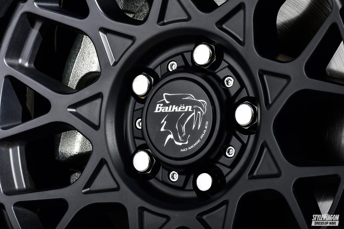 そんなアル&ヴェルでのアウトドアスタイルに最適なのが、ヴァルケンがブランドとして初めて展開するオフ系ホイール、ローツェ。深いリムから急角度で立ち上がったディスクが、ダイナミックなコンケイブを描く9交点のパワー系メッシュで、リムフランジには台形のディンプルとピアスボルトを並べたビードロック風とするなど、その意匠はまさにオフ系の王道だ。